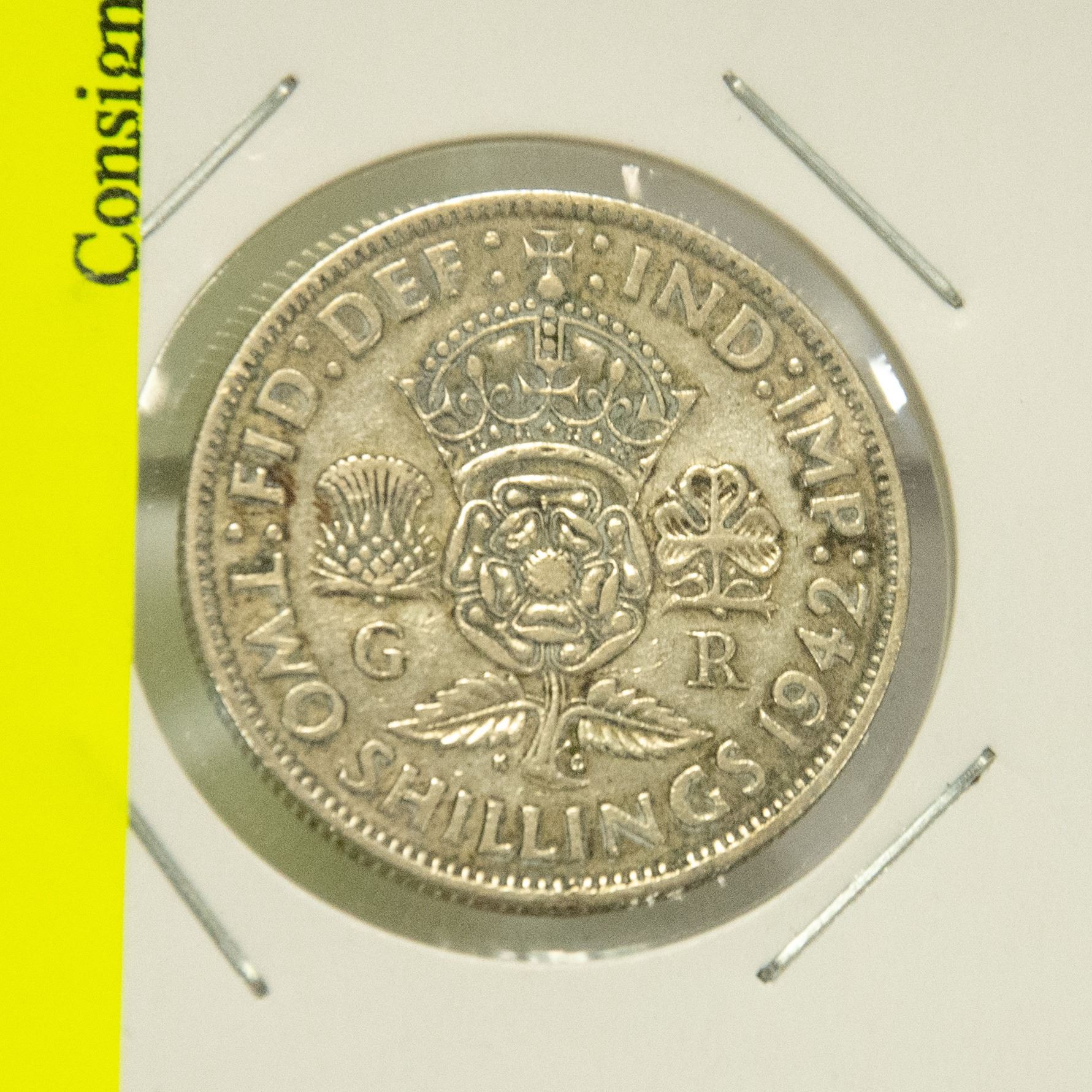 1942 ENGLISH SILVER TWO SHILLINGS COIN