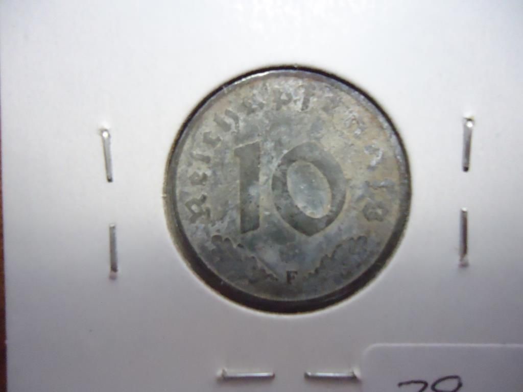 1942-F GERMAN 10 PFENNIGS WITH SWASTIKA