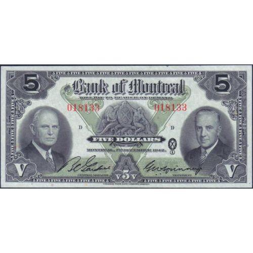1942 Five Dollars Bank of Montreal, CH 505-64-02 Serial Number 018133 D, PMG Gem Uncirculated 66 Exceptional Paper Quality