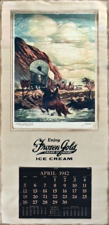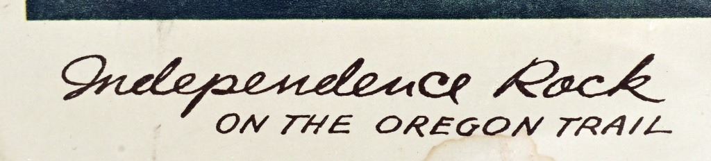Portrays "Independence Rock on The Oregon Trail" lithograph by artist Al Mettel. Measures 22" x 45.5"