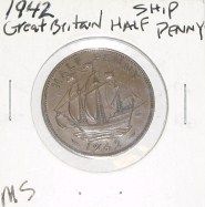 1942 GREAT BRITAIN SHIP HALF PENNY *RARE MS HIGH GRADE*!! ***Coin, Currency & All Items Listed in this auction - Grades, Conditions and Values are not Safe Deposit Coins LLC Responsibilty. Grades, Condition and Values are determined by Consigner(s) & Buyers ONLY***