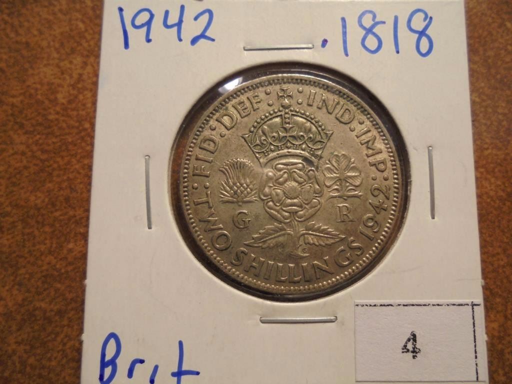1942 GREAT BRITAIN SILVER 2 SHILLINGS .1818 OZ.ASW