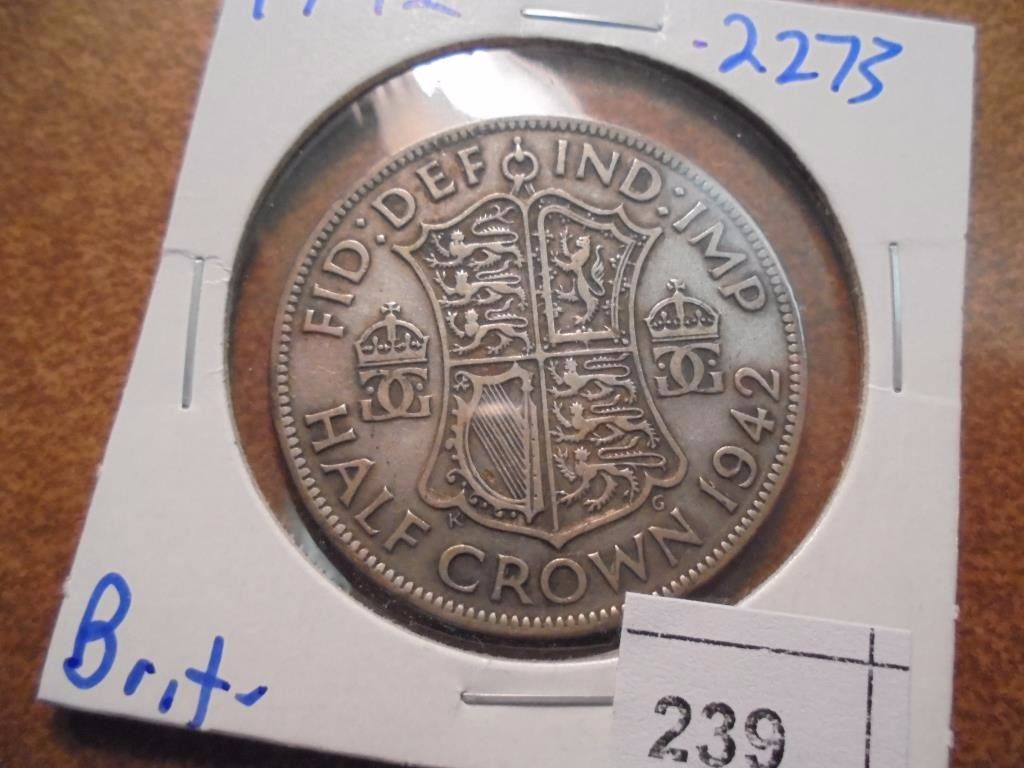1942 GREAT BRITAIN SILVER HALF CROWN .2273 OZ. ASW