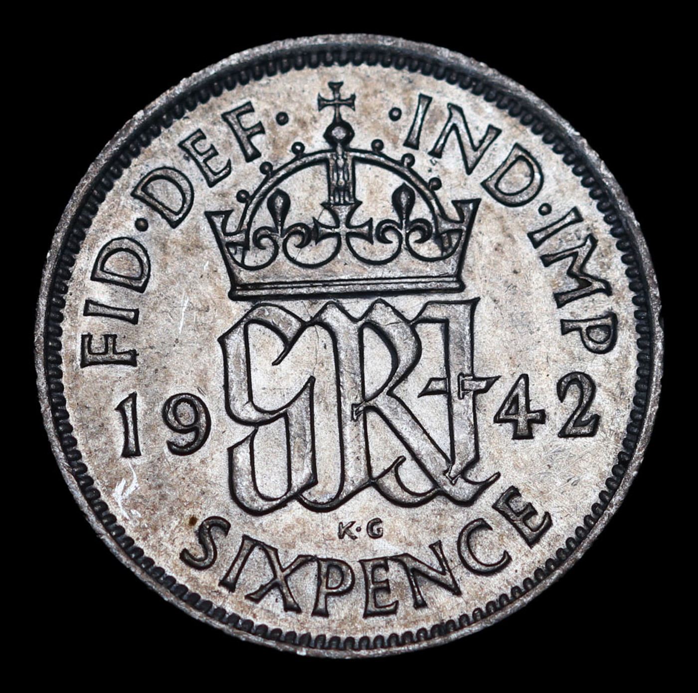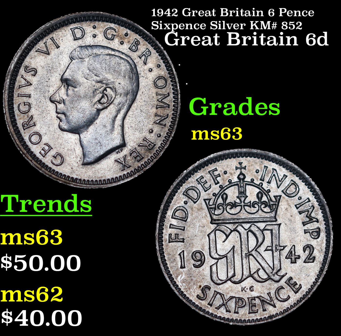 1942 Great Britain 6 Pence Sixpence Silver KM# 852 Grades Select Unc.