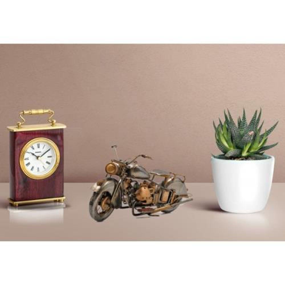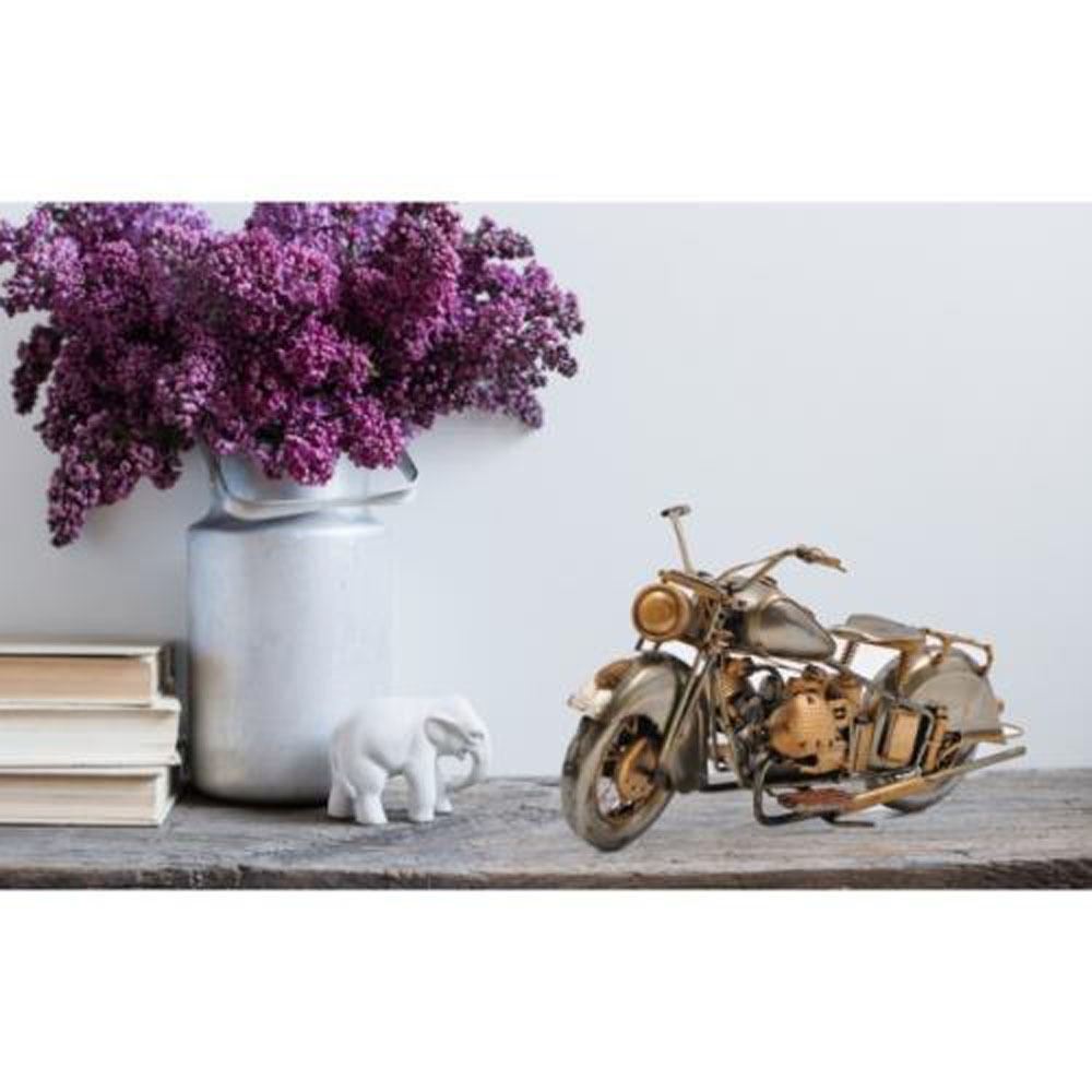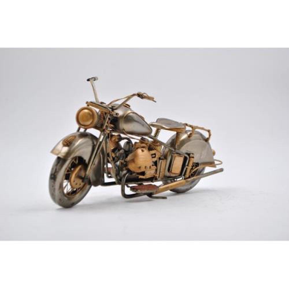 Beautifully handmade and so each piece is a unique collectible and show piece for your home. Decoration parts comes with stickers to match your scene, Plastic die cast metal, Ultra precision design with some moving parts where applicable, Decoration parts decals accurately reproduced. Decorate for any table, desk, or shelf in sporty fashion with Our Rustic Iron Harley Davidson Bike Sculpture. Featuring a rustic iron frame, this charming vintage Motorcycle includes detailed craftsmanship . The silver and brown metal seat and handlebars are finished in natural colors. Size: 7X13X7 Inches. Weights: 10 LBS.