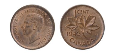 1942. ICCS Mint State-64. Red. 80% red luster.