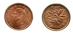 1942. ICCS Mint State-64. Red. 90% red luster.