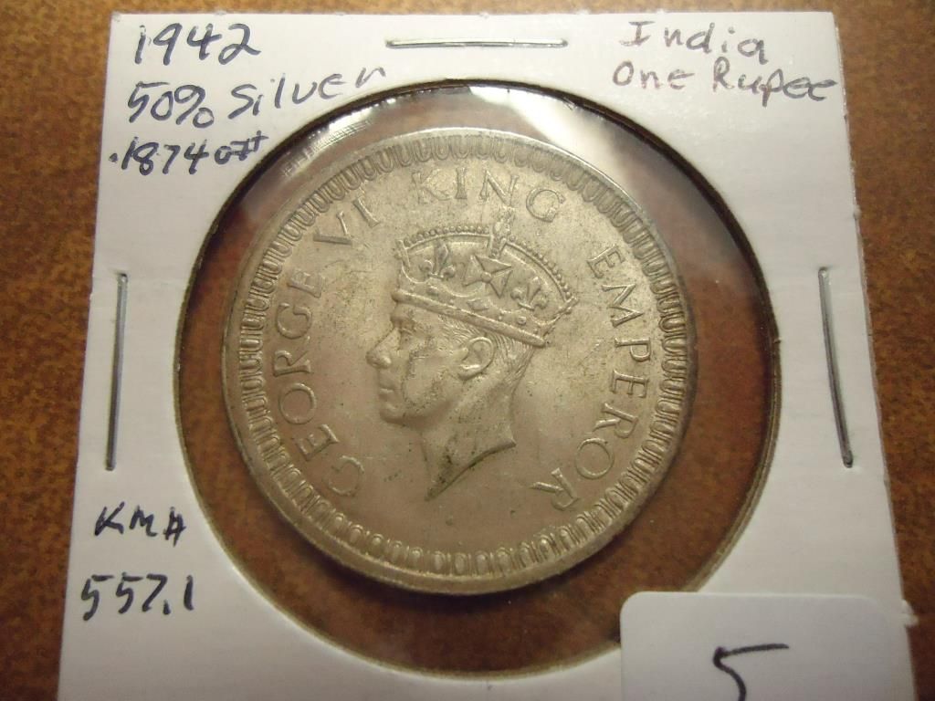 1942 INDIA SILVER RUPEE .1874 OZ. ASW