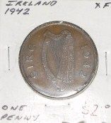 1942 IRELAND ONE PENNY *RARE EXTRA FINE GRADE*!! ***Coin, Currency & All Items Listed in this auction - Grades, Conditions and Values are not Safe Deposit Coins LLC Responsibilty. Grades, Condition and Values are determined by Consigner(s) & Buyers ONLY***