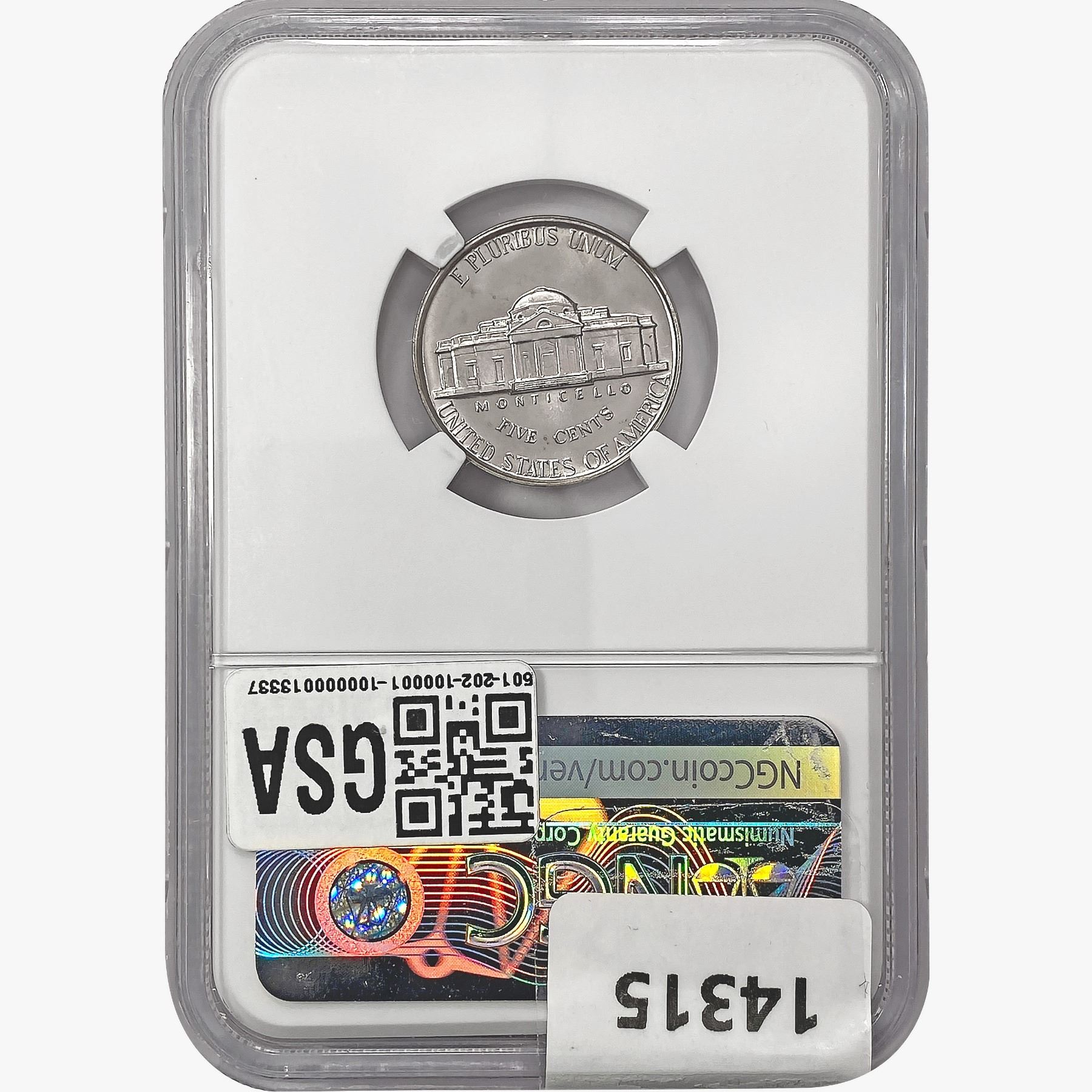 e. Coins sold referencing a third-party grading service are sold “AS IS” without any express or implied warranty, except for a guarantee by GSA that they are genuine. Removal or alteration of the holder, voids all of Bidder’s claims concerning that Product. Certain warranties may be available from the grading services and Bidders are referred to them for further details: Numismatic Guaranty Corporation (NGC), PO Box 4776, Sarasota, FL 34230, www.ngccoin.com/services/writtenguarantee.asp; Professional Coin Grading Services (PCGS), PO Box 9458, Newport Beach, CA 92658, www.pcgs.com/guarantee.html; ANACS, 6555 S. Kenton St., Ste. 303, Englewood, CO 80111; and Independent Coin Grading Co. (ICG), 7901 East Bellview, Ave., Suite 50, Englewood, CO 80111.