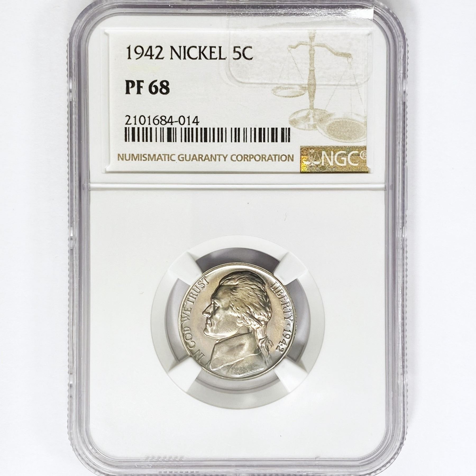 1942 Jefferson Nickel NGC PF68 Nickel