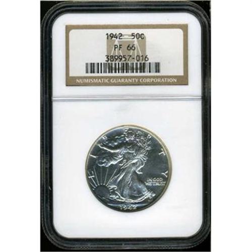 <b>1942 Liberty Walking Half Dollar. NGC graded Proof 66.</b> A sparkling brilliant white gem specimen of the final Proof year in the walking Liberty half dollar run -- wartime conditions necessitated that the mint cease offering Proofs to collectors <b>(PCGS # 6614)</b>
