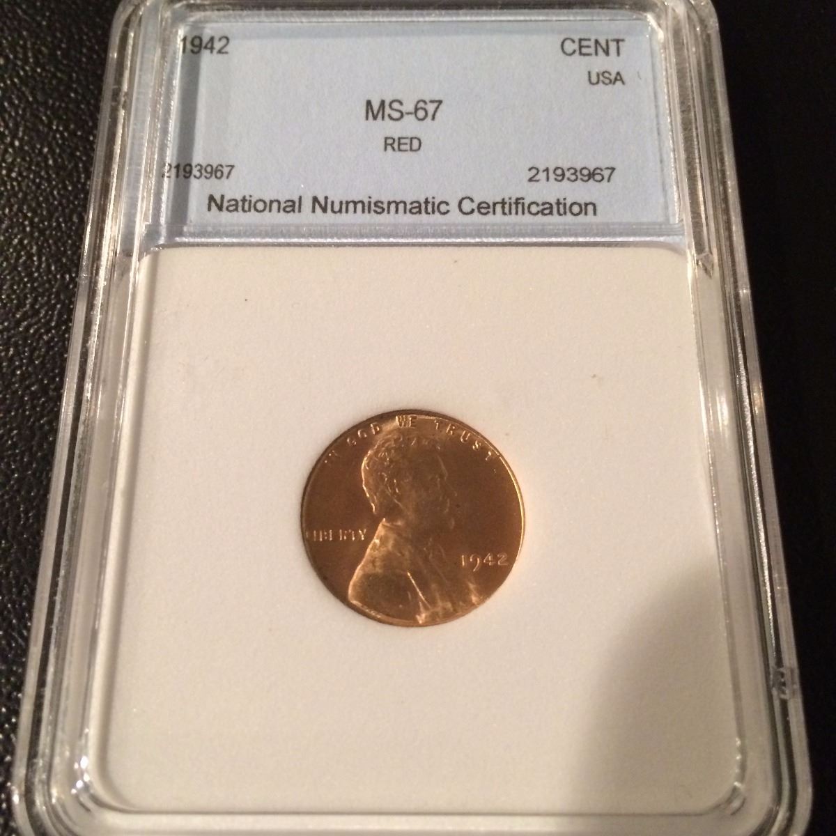 1942 Lincoln Cent NNC MS67 Red $300 Value