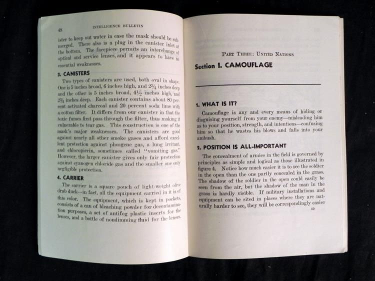 1942 MILITARY INTELLIGENCE BOOKLET-93 PGS---SOME TOPICS INCLUDE--CHARACTERISTICS OF THE JAPANESE--CAMOUFLAGE--GROUND FORCES--UN BRIT ARMORED UNITS</td></tr></tbody></table>