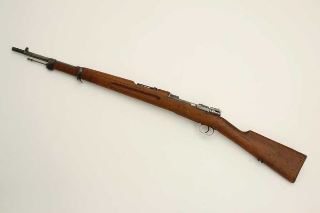 x 55 caliber, serial #631481. The rifle is good overall condition with a 26” import marked barrel, having had a 2” muzzle break added. The barrel and receiver retain a significant amount of their thinning blue finish. The Husqvarna manufactured action is marked 1942. The smooth wood stock shows significant wear with numerous mars, dents and compressions. The butt stock ends with a smooth, steel butt plate and has the brass disk still inlayed into the stock. The bore is good, the action crisp and markings are sharp on this nice Swede. (C+R) Est.: $150-$300.