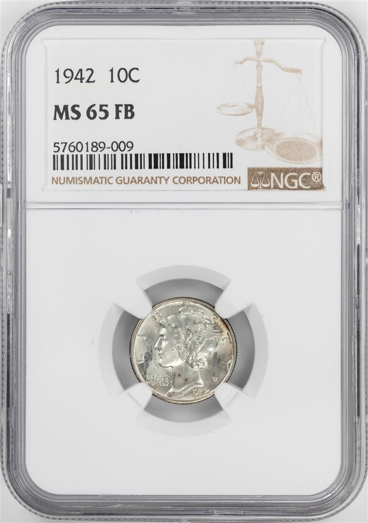 One 1942 Mercury Dime Coin NGC MS65FB. NGC Certified.