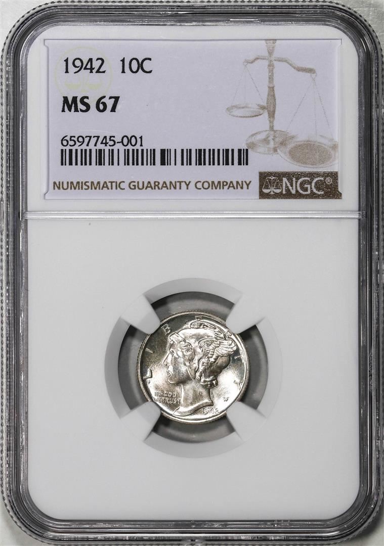 One 1942 Mercury Dime Coin NGC MS67. NGC Certified.