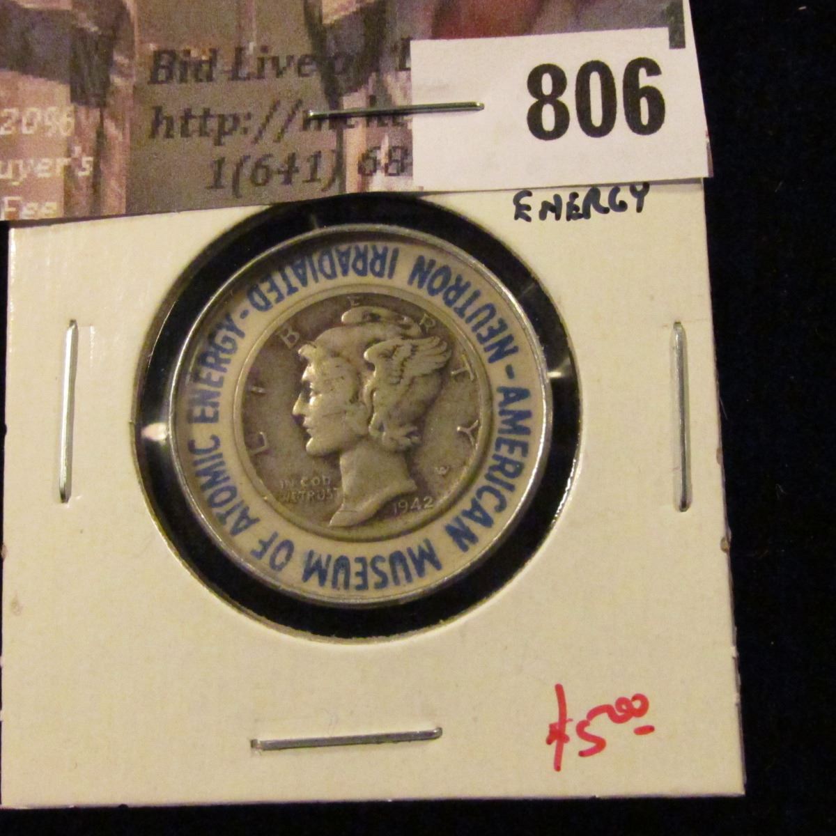 1942 Mercury Dime, encased and Neutron Irradiated – Museum of Atomic Energy, value $5