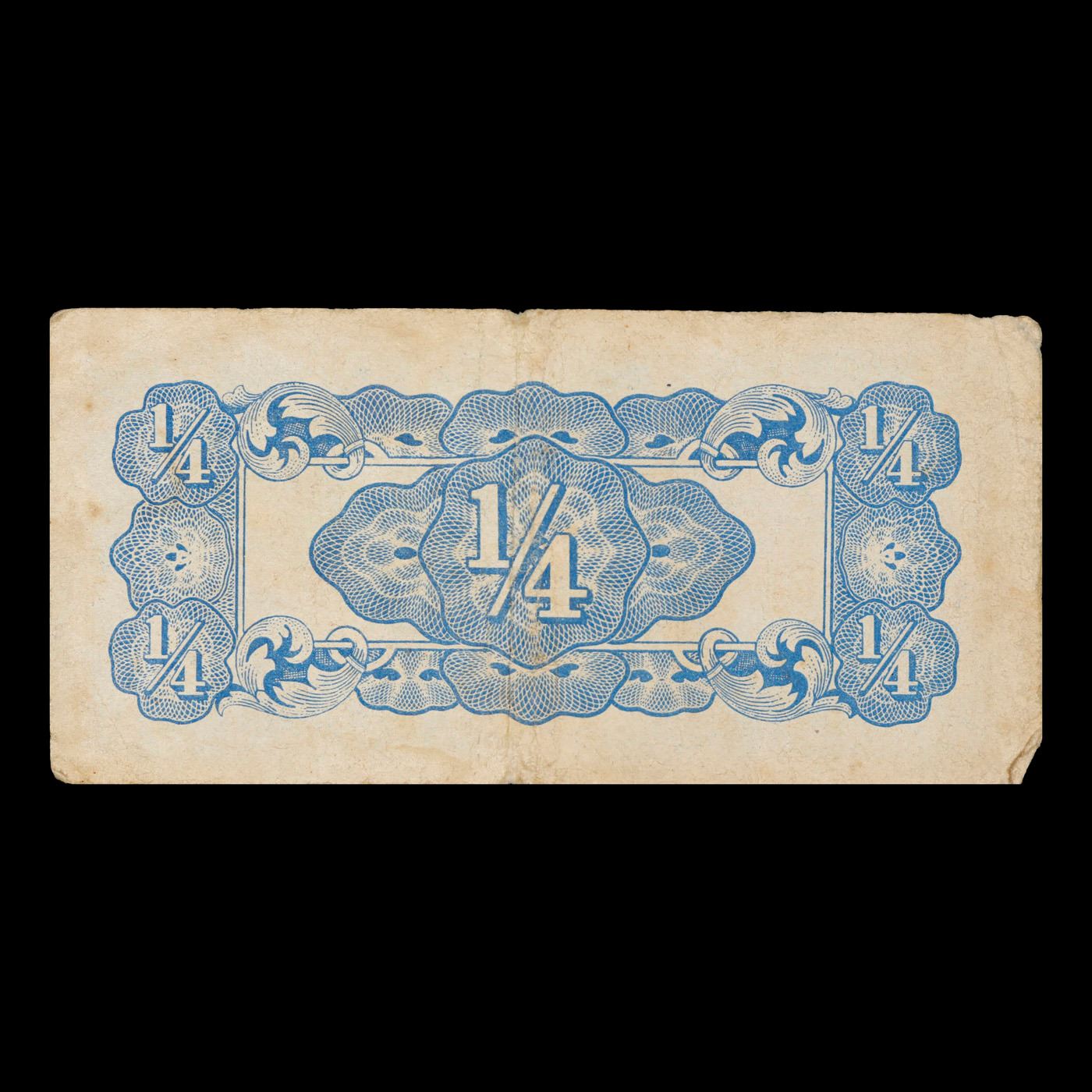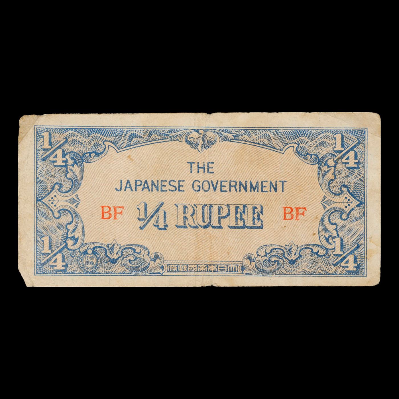1942 Myanmar (Burma) WWII Japanese Occupation 1/4 Rupee Note P# 12 Grades vf++. Japanese invasion money, officially known as Southern Development Bank Notes (Japanese: ??????? Dai T?-A Sens? gunpy?, "Greater East Asia War military scrip"), was currency issued by the Japanese Military Authority as a replacement for local currency after the conquest of colonies and other states in World War II. Japan printed this currency for many countries, including Malaysia, Singapore, North Borneo, Sarawak, Burma, Brunei, and several Oceania territories controlled by Australia. Some Japanese invasion notes are actually counterfeits produced by the American Office of Strategic Services or the British Special Operations Executive, meant to flood and destabilize the economy in the occupied areas, sometimes also including propaganda printed on the notes themselves.