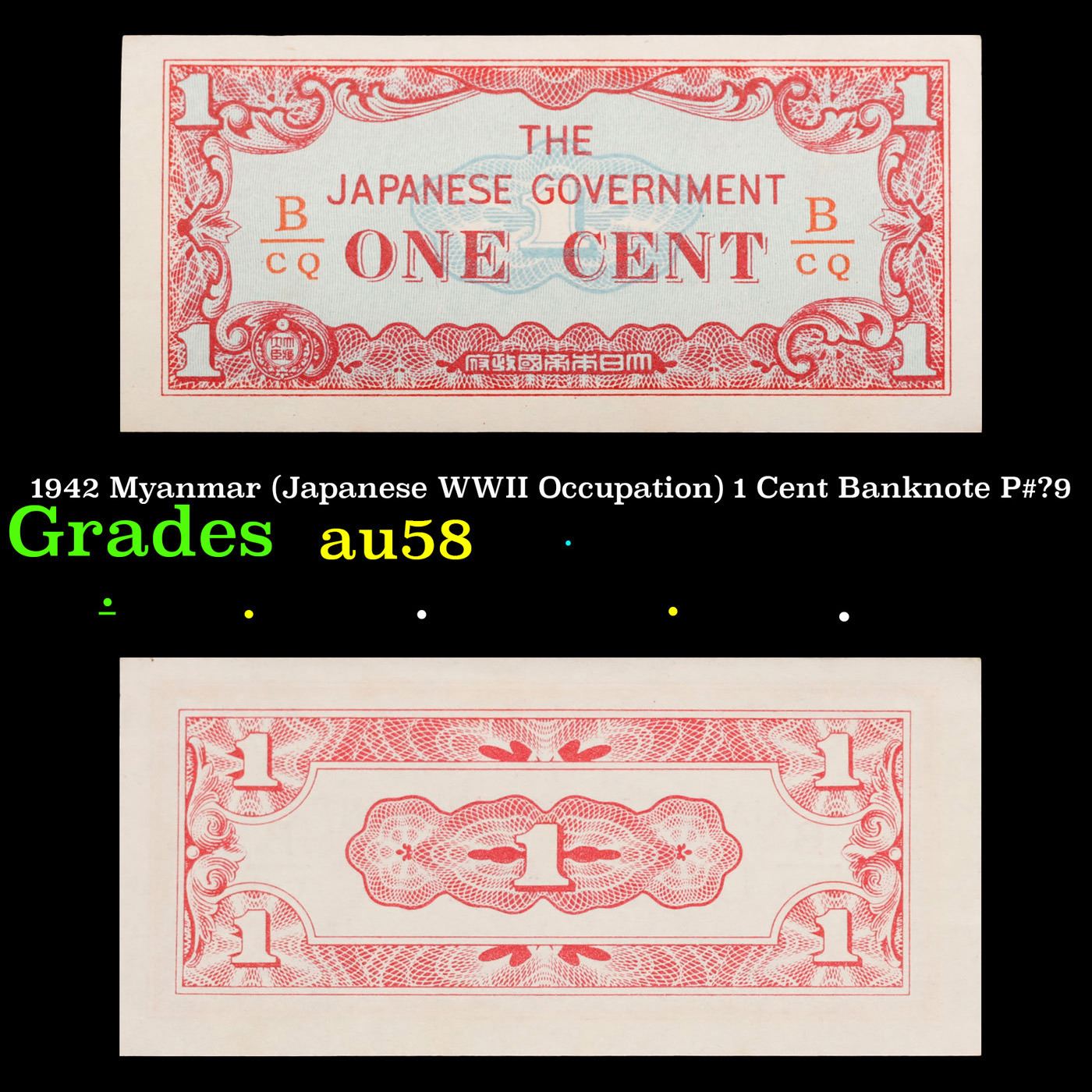 1942 Myanmar (Japanese WWII Occupation) 1 Cent Banknote P#_9 Grades Choice AU/BU Slider