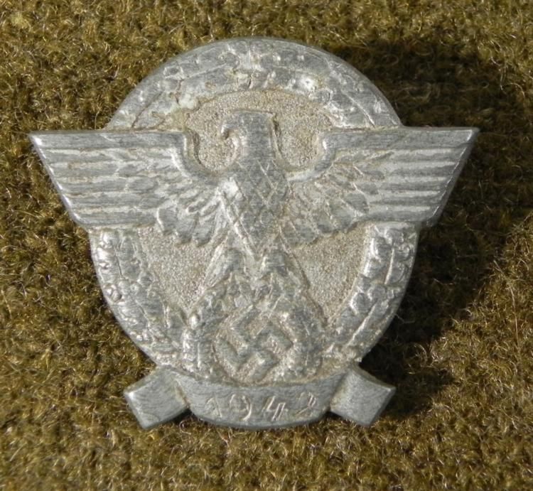 1942 NAZI POLICE MEMBERSHIP BADGE-EAGLE/SWASTIKA & WREATH * BACK MARKED 0.1--PINBACK *