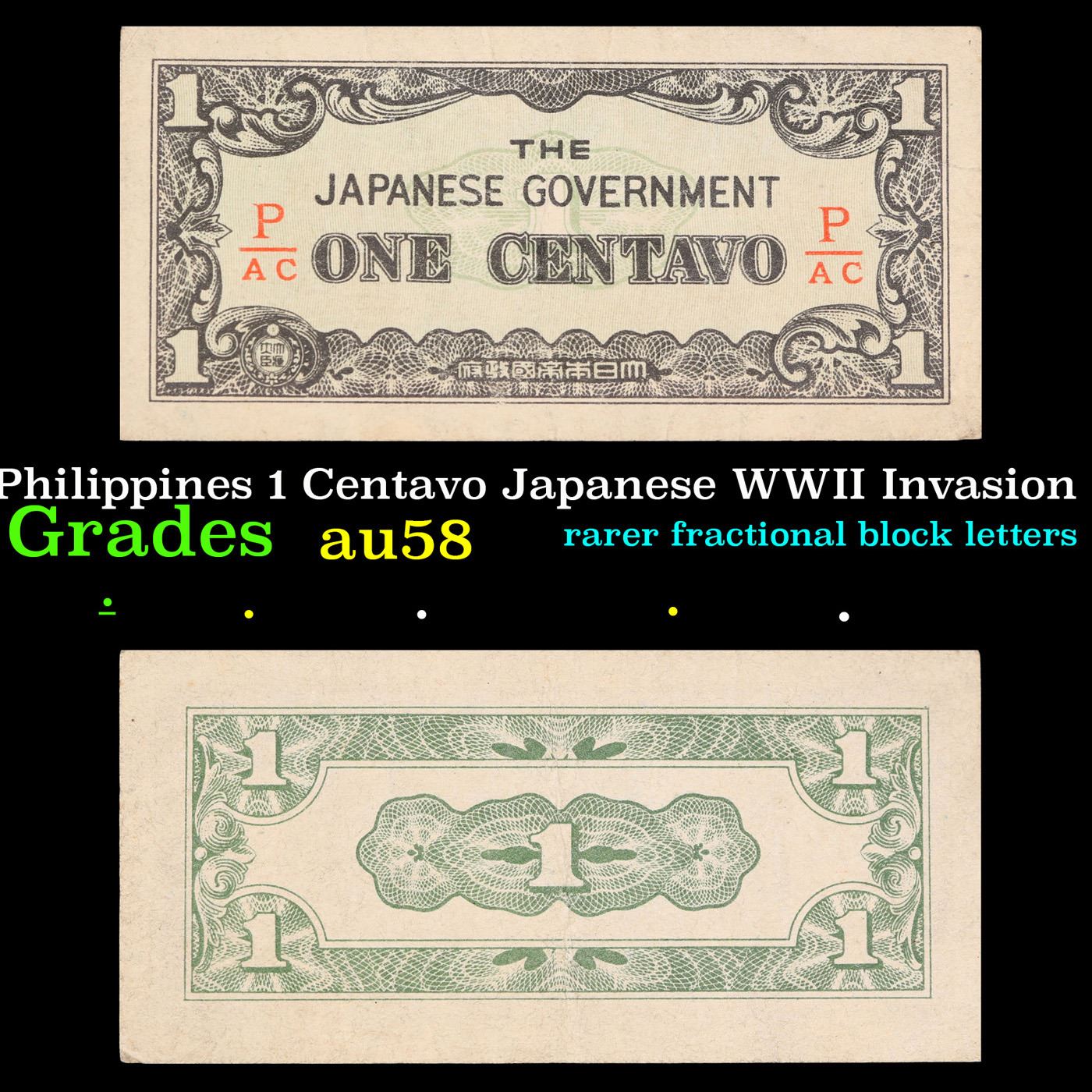 1942 ND Issue Philippines 1 Centavo Japanese WWII Invasion Currency P-102B Grades Choice AU/BU Slide
