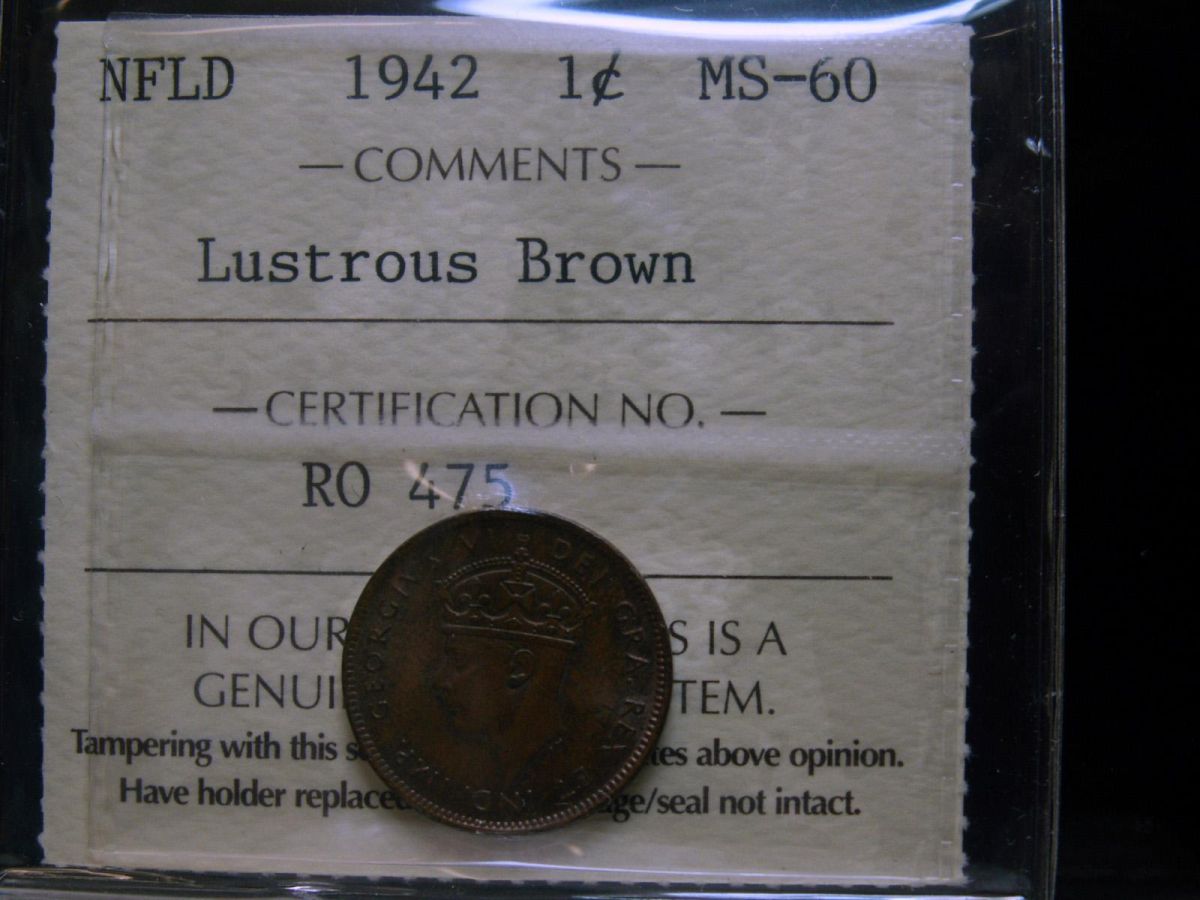 1942 NFLD 1¢ ICCS MS60 Lustrous Brown