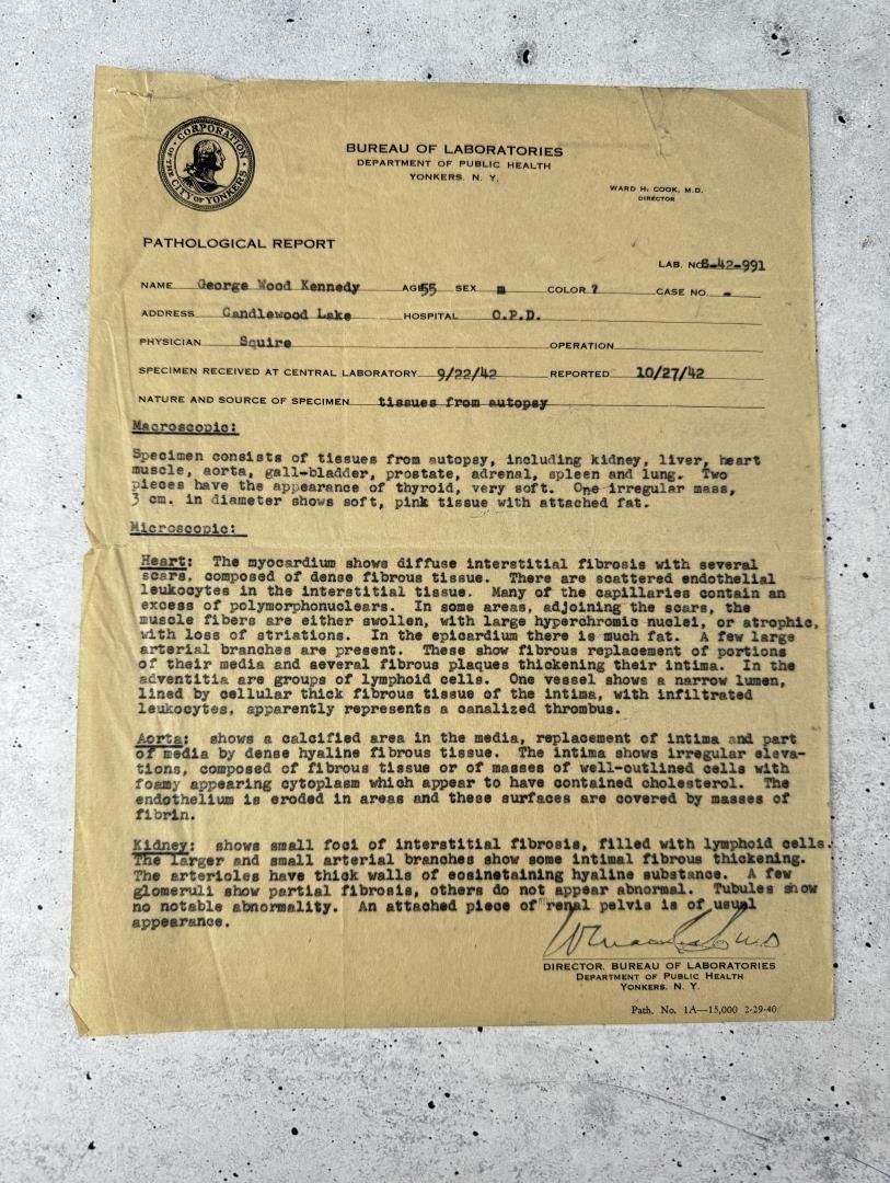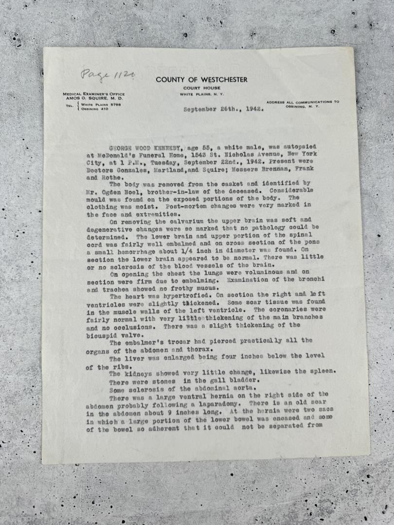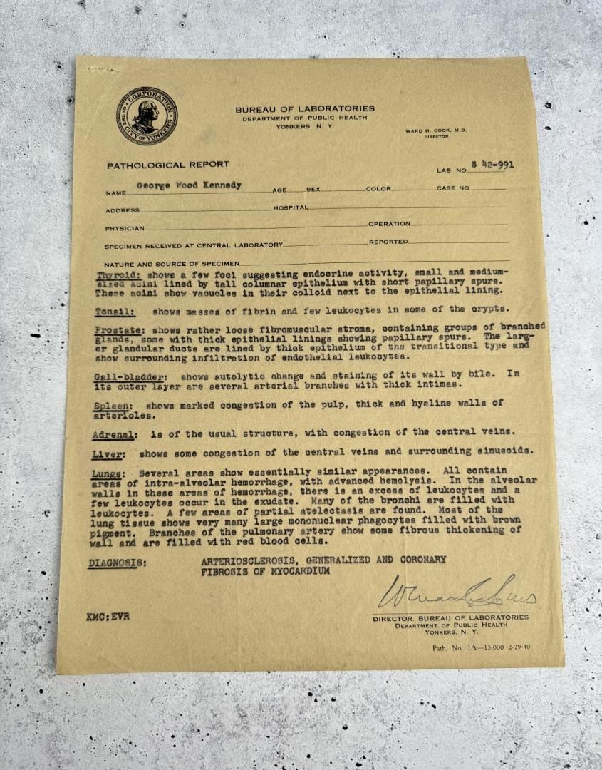 Yonkers NY Full report for one George Wood Kennedy. Cause of death, Coronary Heart Attack.