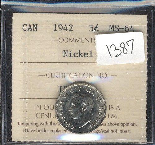 1942 Nickel ICCS MS64 A razor sharp BU example!