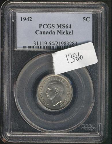 1942 Nickel PCGS MS64 well struck with nice eyebrow.