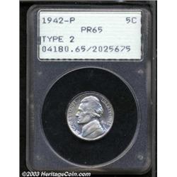 <TABLE cellSpacing=0 cellPadding=0 width="100%" bgColor=#000000 border=0><TBODY><TR><TD width="100%"><TABLE cellSpacing=1 cellPadding=3 width="100%" border=0><TBODY><TR><TD width="100%" bgColor=#79735c><FONT face=arial color=#ffffff size=3><B>Description</B> </FONT></TD></TR><TR><TD width="100%" bgColor=#ffffff><FONT face=arial size=2><B>1942-P 5C Type Two PR65 PCGS.</B></I> A solid Gem with dazzling reflective qualities and a splash of milky patina on the obverse. First generation holder. </FONT></TD></TR></TBODY></TABLE></TD></TR></TBODY></TABLE><BR><A name=PricesRealized></A><TABLE cellSpacing=0 cellPadding=0 width="100%" bgColor=#000000 border=0><TBODY><TR><TD width="100%"><TABLE cellSpacing=1 cellPadding=3 width="100%" border=0><TBODY><TR><TD width="100%" bgColor=#79735c><A name=PR><FONT face=arial color=#ffffff size=3><B>Previous Prices from Heritage Auctions</B> </FONT></A></TD></TR><TR><TD bgColor=#f6f6ed><TABLE cellSpacing=0 cellPadding=0 width="100%" border=1><TBODY><TR><TD align=middle width="33%"><B>Date</B></TD><TD align=middle width="33%"><B>Service</B></TD><TD align=middle width="33%"><B>Price</B></TD></TR><TR bgColor=whitesmoke><TD width="33%"><B>06/03/2003</B></TD><TD width="33%">NGC</TD><TD width="33%">$161.00</TD></TR><TR bgColor=whitesmoke><TD width="33%"><B>08/06/2003</B></TD><TD width="33%">NGC</TD><TD width="33%">$166.75</TD></TR><TR bgColor=whitesmoke><TD width="33%"><B>05/07/2002</B></TD><TD width="33%">NGC</TD><TD width="33%">$149.50</TD></TR><TR bgColor=whitesmoke><TD width="33%"><B>11/27/2001</B></TD><TD width="33%">NGC</TD><TD width="33%">$130.00</TD></TR><TR bgColor=whitesmoke><TD width="33%"><B>03/04/1994</B></TD><TD width="33%">NGC</TD><TD width="33%">$77.00</TD></TR><TR bgColor=whitesmoke><TD width="33%"><B>06/24/2003</B></TD><TD width="33%">ANACS</TD><TD width="33%">$155.25</TD></TR><TR bgColor=whitesmoke><TD width="33%"><B>05/27/2003</B></TD><TD width="33%">PCGS</TD><TD width="33%">$156.40</TD></TR><TR bgColor=whitesmoke><TD width="33%"><B>08/06/2003</B></TD><TD width="33%">PCGS</TD><TD width="33%">$161.00</TD></TR><TR bgColor=whitesmoke><TD width="33%"><B>01/13/2003</B></TD><TD width="33%">PCGS</TD><TD width="33%">$143.75</TD></TR><TR bgColor=whitesmoke><TD width="33%"><B>11/12/2002</B></TD><TD width="33%">PCGS</TD><TD width="33%">$138.00</TD></TR><TR bgColor=whitesmoke><TD width="33%"><B>01/22/2002</B></TD><TD width="33%">PCGS</TD><TD width="33%">$101.20</TD></TR><TR bgColor=whitesmoke><TD width="33%"><B>03/28/2000</B></TD><TD width="33%">PCGS</TD><TD width="33%">$100.00</TD></TR><TR bgColor=whitesmoke><TD width="33%"><B>10/03/2000</B></TD><TD width="33%">PCGS</TD><TD width="33%">$78.00</TD></TR><TR bgColor=whitesmoke><TD width="33%"><B>09/05/2000</B></TD><TD width="33%">PCGS</TD><TD width="33%">$110.00</TD></TR><TR bgColor=whitesmoke><TD width="33%"><B>09/23/1998</B></TD><TD width="33%">PCGS</TD><TD width="33%">$88.00</TD></TR><TR bgColor=whitesmoke><TD width="33%"><B>06/10/2003</B></TD><TD width="33%">NGC</TD><TD width="33%">$161.00</TD></TR><TR bgColor=whitesmoke><TD width="33%"><B>08/06/2003</B></TD><TD width="33%">ANACS</TD><TD width="33%">$143.75</TD></TR></TBODY></TABLE></TD></TR><TR><TD bgColor=#ffffff><FONT face=arial size=1 ?>PLEASE NOTE: All prices realized reflect the final hammer price PLUS the buyer's premium in auctions that charge a buyer's premium. Each item has a notation at the top of the listing indicating whether that lot included a buyer's premium. Example: A item that sells with a final hammer price of $100 and a 20% buyer's premium will display with a price realized of $120. All information listed is intended to be as accurate as possible, but errors are possible. Please use this guide carefully and inform us of any inaccuracies. </FONT></TD></TR></TBODY></TABLE></TD></TR></TBODY></TABLE><BR><TABLE cellSpacing=0 cellPadding=0 width="100%" bgColor=#000000 border=0><TBODY><TR><TD width="100%"><TABLE cellSpacing=1 cellPadding=3 width="100%" border=0><TBODY><TR><TD width="100%" bgColor=#79735c colSpan=6><FONT face=arial color=#ffffff size=3><B>Price Guide*</B> </FONT></TD></TR><TR bgColor=#f6f6ed><TD align=middle><B>Grade</B> </TD><TD align=middle><B>Coin World<BR>(Trends)</B> </TD><TD align=middle><B>Numismedia<BR>Retail</B> </TD><TD align=middle><B>Numismedia<BR>Wholesale</B> </TD><TD align=middle><B>Coin<BR>Universe</B> </TD><TD align=middle><B>Heritage<BR>Value Index</B> </TD></TR><TR bgColor=#ffffff><TD align=middle>64</TD><TD align=right>---</TD><TD align=right>$140.00</TD><TD align=right>$112.00</TD><TD align=right>$170.00</TD><TD align=right>$112.33</TD></TR><TR style="FONT-WEIGHT: bold" bgColor=#cccfdd><TD align=middle>65</TD><TD align=right>---</TD><TD align=right>$190.00</TD><TD align=right>$152.00</TD><TD align=right>$250.00</TD><TD align=right>$152.83</TD></TR><TR bgColor=#ffffff><TD align=middle>66</TD><TD align=right>---</TD><TD align=right>$225.00</TD><TD align=right>$180.00</TD><TD align=right>$270.00</TD><TD align=right>$189.50</TD></TR><TR bgColor=#ffffff><TD colSpan=6><FONT size=1>*All information listed is intended to be as accurate as possible, but errors are possible. No item may be returned or refused based on this information which is provided as a service to our customers. You should contact each pricing source directly to determine the accuracy of this information. </FONT></TD></TR></TBODY></TABLE></TD></TR></TBODY></TABLE><BR><TABLE cellSpacing=0 cellPadding=0 width="100%" bgColor=#000000 border=0><TBODY><TR><TD width="100%"><TABLE cellSpacing=1 cellPadding=3 width="100%" border=0><TBODY><TR><TD width="100%" bgColor=#79735c><FONT face=arial color=#ffffff size=3><B>Population Guide</B> </FONT></TD></TR><TR bgColor=#ffffff><TD align=middle><!-- Begin Output of Population Grid--><TABLE cellSpacing=0 cellPadding=0 width="100%" border=0><TBODY><TR><TD vAlign=center><TABLE cellSpacing=0 width="100%" border=1 cellsadding="3"><TBODY><TR><TD vAlign=center><TABLE cellSpacing=0 cellPadding=3 width="100%" border=1><