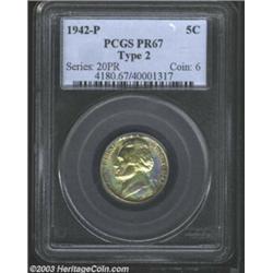 <TR><TD width="100%"><TABLE cellSpacing=1 cellPadding=3 width="100%" border=0><TBODY><TR><TD width="100%" bgColor=#79735c><FONT face=arial color=#ffffff size=3><B>Description</B> </FONT></TD></TR><TR><TD width="100%" bgColor=#ffffff><FONT face=arial size=2><B>1942-P 5C Type Two PR67 PCGS.</B></I> Extremely attractive rainbow toning gravitates toward the borders. An extremely bright, fully original Superb specimen worthy of consideration by anyone who appreciates great color. </FONT></TD></TR></TBODY></TABLE></TD></TR></TBODY></TABLE><BR><A name=PricesRealized></A><TABLE cellSpacing=0 cellPadding=0 width="100%" bgColor=#000000 border=0><TBODY><TR><TD width="100%"><TABLE cellSpacing=1 cellPadding=3 width="100%" border=0><TBODY><TR><TD width="100%" bgColor=#79735c><A name=PR><FONT face=arial color=#ffffff size=3><B>Previous Prices from Heritage Auctions</B> </FONT></A></TD></TR><TR><TD bgColor=#f6f6ed><TABLE cellSpacing=0 cellPadding=0 width="100%" border=1><TBODY><TR><TD align=middle width="33%"><B>Date</B></TD><TD align=middle width="33%"><B>Service</B></TD><TD align=middle width="33%"><B>Price</B></TD></TR><TR bgColor=whitesmoke><TD width="33%"><B>11/23/2002</B></TD><TD width="33%">PCGS</TD><TD width="33%">$270.25</TD></TR><TR bgColor=whitesmoke><TD width="33%"><B>09/28/2002</B></TD><TD width="33%">PCGS</TD><TD width="33%">$305.90</TD></TR><TR bgColor=whitesmoke><TD width="33%"><B>05/28/2002</B></TD><TD width="33%">PCGS</TD><TD width="33%">$258.75</TD></TR><TR bgColor=whitesmoke><TD width="33%"><B>02/19/2002</B></TD><TD width="33%">PCGS</TD><TD width="33%">$254.15</TD></TR><TR bgColor=whitesmoke><TD width="33%"><B>06/02/2003</B></TD><TD width="33%">NGC</TD><TD width="33%">$296.70</TD></TR><TR bgColor=whitesmoke><TD width="33%"><B>03/13/1999</B></TD><TD width="33%">NGC</TD><TD width="33%">$195.50</TD></TR><TR bgColor=whitesmoke><TD width="33%"><B>06/03/1994</B></TD><TD width="33%">NGC</TD><TD width="33%">$357.50</TD></TR><TR bgColor=whitesmoke><TD width="33%"><B>07/30/2002</B></TD><TD width="33%">NGC</TD><TD width="33%">$230.00</TD></TR><TR bgColor=whitesmoke><TD width="33%"><B>05/31/2003</B></TD><TD width="33%">PCGS</TD><TD width="33%">$546.25</TD></TR><TR bgColor=whitesmoke><TD width="33%"><B>05/08/2001</B></TD><TD width="33%">PCGS</TD><TD width="33%">$310.00</TD></TR><TR bgColor=whitesmoke><TD width="33%"><B>03/20/2001</B></TD><TD width="33%">PCGS</TD><TD width="33%">$250.00</TD></TR><TR bgColor=whitesmoke><TD width="33%"><B>10/04/1997</B></TD><TD width="33%">PCGS</TD><TD width="33%">$242.00</TD></TR><TR bgColor=whitesmoke><TD width="33%"><B>10/04/1997</B></TD><TD width="33%">PCGS</TD><TD width="33%">$220.00</TD></TR><TR bgColor=whitesmoke><TD width="33%"><B>11/25/2002</B></TD><TD width="33%">PCGS</TD><TD width="33%">$258.75</TD></TR><TR bgColor=whitesmoke><TD width="33%"><B>11/25/2002</B></TD><TD width="33%">ANACS</TD><TD width="33%">$224.25</TD></TR></TBODY></TABLE></TD></TR><TR><TD bgColor=#ffffff><FONT face=arial size=1 ?>PLEASE NOTE: All prices realized reflect the final hammer price PLUS the buyer's premium in auctions that charge a buyer's premium. Each item has a notation at the top of the listing indicating whether that lot included a buyer's premium. Example: A item that sells with a final hammer price of $100 and a 20% buyer's premium will display with a price realized of $120. All information listed is intended to be as accurate as possible, but errors are possible. Please use this guide carefully and inform us of any inaccuracies. </FONT></TD></TR></TBODY></TABLE></TD></TR></TBODY></TABLE><BR><TABLE cellSpacing=0 cellPadding=0 width="100%" bgColor=#000000 border=0><TBODY><TR><TD width="100%"><TABLE cellSpacing=1 cellPadding=3 width="100%" border=0><TBODY><TR><TD width="100%" bgColor=#79735c colSpan=6><FONT face=arial color=#ffffff size=3><B>Price Guide*</B> </FONT></TD></TR><TR bgColor=#f6f6ed><TD align=middle><B>Grade</B> </TD><TD align=middle><B>Coin World<BR>(Trends)</B> </TD><TD align=middle><B>Numismedia<BR>Retail</B> </TD><TD align=middle><B>Numismedia<BR>Wholesale</B> </TD><TD align=middle><B>Coin<BR>Universe</B> </TD><TD align=middle><B>Heritage<BR>Value Index</B> </TD></TR><TR bgColor=#ffffff><TD align=middle>66</TD><TD align=right>---</TD><TD align=right>$225.00</TD><TD align=right>$180.00</TD><TD align=right>$270.00</TD><TD align=right>$172.50</TD></TR><TR style="FONT-WEIGHT: bold" bgColor=#cccfdd><TD align=middle>67</TD><TD align=right>---</TD><TD align=right>$390.00</TD><TD align=right>$300.00</TD><TD align=right>$475.00</TD><TD align=right>$316.25</TD></TR><TR bgColor=#ffffff><TD align=middle>68</TD><TD align=right>---</TD><TD align=right>$485.00</TD><TD align=right>$373.00</TD><TD align=right>$2,000.00</TD><TD align=right>$1,400.00</TD></TR><TR bgColor=#ffffff><TD colSpan=6><FONT size=1>*All information listed is intended to be as accurate as possible, but errors are possible. No item may be returned or refused based on this information which is provided as a service to our customers. You should contact each pricing source directly to determine the accuracy of this information. </FONT></TD></TR></TBODY></TABLE></TD></TR></TBODY></TABLE><BR><TABLE cellSpacing=0 cellPadding=0 width="100%" bgColor=#000000 border=0><TBODY><TR><TD width="100%"><TABLE cellSpacing=1 cellPadding=3 width="100%" border=0><TBODY><TR><TD width="100%" bgColor=#79735c><FONT face=arial color=#ffffff size=3><B>Population Guide</B> </FONT></TD></TR><TR bgColor=#ffffff><TD align=middle><!-- Begin Output of Population Grid--><TABLE cellSpacing=0 cellPadding=0 width="100%" border=0><TBODY><TR><TD vAlign=center><TABLE cellSpacing=0 width="100%" border=1 cellsadding="3"><TBODY><TR><TD vAlign=center><TABLE cellSpacing=0 cellPadding=3 width="100%" border=1><TBODY><TR><TD vAlign=center align=middle bgColor=#f0f1e8 colSpan=2 <CENTER><FONT face=Arial size=2><B>PCGS Pop </B></FONT><CENTER></CENTER></TD><TD vAlign=center align=middle bgColor=#f0f1e8 colSpan=2><CENTER><FONT face=Arial size=2><B>NGC Pop</