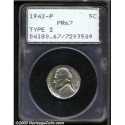 <TABLE cellSpacing=0 cellPadding=0 width="100%" bgColor=#000000 border=0><TBODY><TR><TD width="100%"><TABLE cellSpacing=1 cellPadding=3 width="100%" border=0><TBODY><TR><TD width="100%" bgColor=#79735c><FONT face=arial color=#ffffff size=3><B>Description</B> </FONT></TD></TR><TR><TD width="100%" bgColor=#ffffff><FONT face=arial size=2><B>1942-P 5C Type Two PR67 PCGS.</B></I> An incredibly vibrant specimen with near-perfect surfaces drenched in green-gold patina. </FONT></TD></TR></TBODY></TABLE></TD></TR></TBODY></TABLE><BR><A name=PricesRealized></A><TABLE cellSpacing=0 cellPadding=0 width="100%" bgColor=#000000 border=0><TBODY><TR><TD width="100%"><TABLE cellSpacing=1 cellPadding=3 width="100%" border=0><TBODY><TR><TD width="100%" bgColor=#79735c><A name=PR><FONT face=arial color=#ffffff size=3><B>Previous Prices from Heritage Auctions</B> </FONT></A></TD></TR><TR><TD bgColor=#f6f6ed><TABLE cellSpacing=0 cellPadding=0 width="100%" border=1><TBODY><TR><TD align=middle width="33%"><B>Date</B></TD><TD align=middle width="33%"><B>Service</B></TD><TD align=middle width="33%"><B>Price</B></TD></TR><TR bgColor=whitesmoke><TD width="33%"><B>10/22/2002</B></TD><TD width="33%">PCGS</TD><TD width="33%">$253.00</TD></TR><TR bgColor=whitesmoke><TD width="33%"><B>06/08/2002</B></TD><TD width="33%">PCGS</TD><TD width="33%">$281.75</TD></TR><TR bgColor=whitesmoke><TD width="33%"><B>03/12/2002</B></TD><TD width="33%">PCGS</TD><TD width="33%">$241.50</TD></TR><TR bgColor=whitesmoke><TD width="33%"><B>05/03/2003</B></TD><TD width="33%">PCGS</TD><TD width="33%">$379.50</TD></TR><TR bgColor=whitesmoke><TD width="33%"><B>05/31/2003</B></TD><TD width="33%">NGC</TD><TD width="33%">$322.00</TD></TR><TR bgColor=whitesmoke><TD width="33%"><B>03/13/1999</B></TD><TD width="33%">NGC</TD><TD width="33%">$195.50</TD></TR><TR bgColor=whitesmoke><TD width="33%"><B>06/03/1994</B></TD><TD width="33%">NGC</TD><TD width="33%">$357.50</TD></TR><TR bgColor=whitesmoke><TD width="33%"><B>07/30/2002</B></TD><TD width="33%">NGC</TD><TD width="33%">$230.00</TD></TR><TR bgColor=whitesmoke><TD width="33%"><B>08/12/2003</B></TD><TD width="33%">PCGS</TD><TD width="33%">$368.00</TD></TR><TR bgColor=whitesmoke><TD width="33%"><B>05/31/2003</B></TD><TD width="33%">PCGS</TD><TD width="33%">$546.25</TD></TR><TR bgColor=whitesmoke><TD width="33%"><B>08/06/2003</B></TD><TD width="33%">PCGS</TD><TD width="33%">$356.50</TD></TR><TR bgColor=whitesmoke><TD width="33%"><B>05/08/2001</B></TD><TD width="33%">PCGS</TD><TD width="33%">$310.00</TD></TR><TR bgColor=whitesmoke><TD width="33%"><B>03/20/2001</B></TD><TD width="33%">PCGS</TD><TD width="33%">$250.00</TD></TR><TR bgColor=whitesmoke><TD width="33%"><B>10/04/1997</B></TD><TD width="33%">PCGS</TD><TD width="33%">$242.00</TD></TR><TR bgColor=whitesmoke><TD width="33%"><B>10/04/1997</B></TD><TD width="33%">PCGS</TD><TD width="33%">$220.00</TD></TR><TR bgColor=whitesmoke><TD width="33%"><B>11/25/2002</B></TD><TD width="33%">PCGS</TD><TD width="33%">$258.75</TD></TR><TR bgColor=whitesmoke><TD width="33%"><B>11/25/2002</B></TD><TD width="33%">ANACS</TD><TD width="33%">$224.25</TD></TR></TBODY></TABLE></TD></TR><TR><TD bgColor=#ffffff><FONT face=arial size=1 ?>PLEASE NOTE: All prices realized reflect the final hammer price PLUS the buyer's premium in auctions that charge a buyer's premium. Each item has a notation at the top of the listing indicating whether that lot included a buyer's premium. Example: A item that sells with a final hammer price of $100 and a 20% buyer's premium will display with a price realized of $120. All information listed is intended to be as accurate as possible, but errors are possible. Please use this guide carefully and inform us of any inaccuracies. </FONT></TD></TR></TBODY></TABLE></TD></TR></TBODY></TABLE><BR><TABLE cellSpacing=0 cellPadding=0 width="100%" bgColor=#000000 border=0><TBODY><TR><TD width="100%"><TABLE cellSpacing=1 cellPadding=3 width="100%" border=0><TBODY><TR><TD width="100%" bgColor=#79735c colSpan=6><FONT face=arial color=#ffffff size=3><B>Price Guide*</B> </FONT></TD></TR><TR bgColor=#f6f6ed><TD align=middle><B>Grade</B> </TD><TD align=middle><B>Coin World<BR>(Trends)</B> </TD><TD align=middle><B>Numismedia<BR>Retail</B> </TD><TD align=middle><B>Numismedia<BR>Wholesale</B> </TD><TD align=middle><B>Coin<BR>Universe</B> </TD><TD align=middle><B>Heritage<BR>Value Index</B> </TD></TR><TR bgColor=#ffffff><TD align=middle>66</TD><TD align=right>---</TD><TD align=right>$225.00</TD><TD align=right>$180.00</TD><TD align=right>$270.00</TD><TD align=right>$189.50</TD></TR><TR style="FONT-WEIGHT: bold" bgColor=#cccfdd><TD align=middle>67</TD><TD align=right>---</TD><TD align=right>$390.00</TD><TD align=right>$300.00</TD><TD align=right>$475.00</TD><TD align=right>$344.50</TD></TR><TR bgColor=#ffffff><TD align=middle>68</TD><TD align=right>---</TD><TD align=right>$485.00</TD><TD align=right>$373.00</TD><TD align=right>$2,000.00</TD><TD align=right>$1,400.00</TD></TR><TR bgColor=#ffffff><TD colSpan=6><FONT size=1>*All information listed is intended to be as accurate as possible, but errors are possible. No item may be returned or refused based on this information which is provided as a service to our customers. You should contact each pricing source directly to determine the accuracy of this information. </FONT></TD></TR></TBODY></TABLE></TD></TR></TBODY></TABLE><BR><TABLE cellSpacing=0 cellPadding=0 width="100%" bgColor=#000000 border=0><TBODY><TR><TD width="100%"><TABLE cellSpacing=1 cellPadding=3 width="100%" border=0><TBODY><TR><TD width="100%" bgColor=#79735c><FONT face=arial color=#ffffff size=3><B>Population Guide</B> </FONT></TD></TR><TR bgColor=#ffffff><TD align=middle><!-- Begin Output of Population Grid--><TABLE cellSpacing=0 cellPadding=0 width="100%" border=0><TBODY><TR><TD vAlign=center><TABLE cellSpacing=0 width="100%" border=1 cellsadding="3"><TBODY><TR><TD vAlign=center><TABLE cellSpacing=0 cellPadding=3 width="100%" border=1><TBODY><TR><TD vAlign