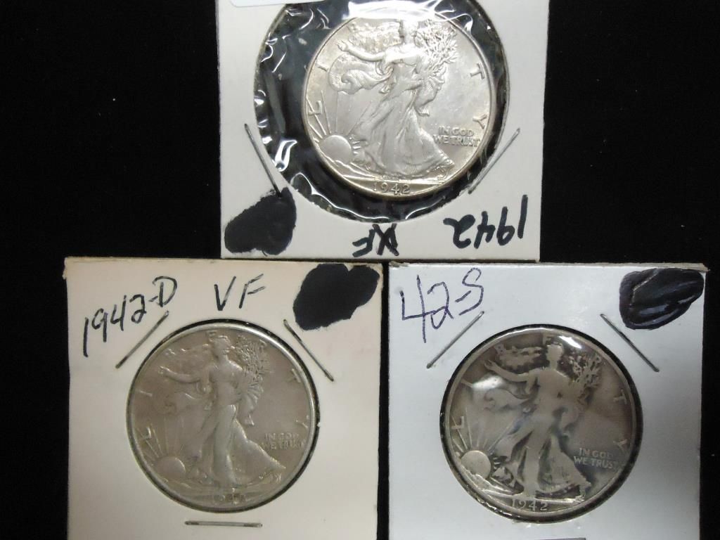 1942 P/D/S WALKING LIBERTY HALF DOLLARS