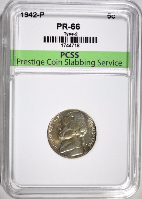 1942-P JEFFERSON NICKEL TYPE-2, PCSS GEM PROOF ESTIMATE $150 - $160.