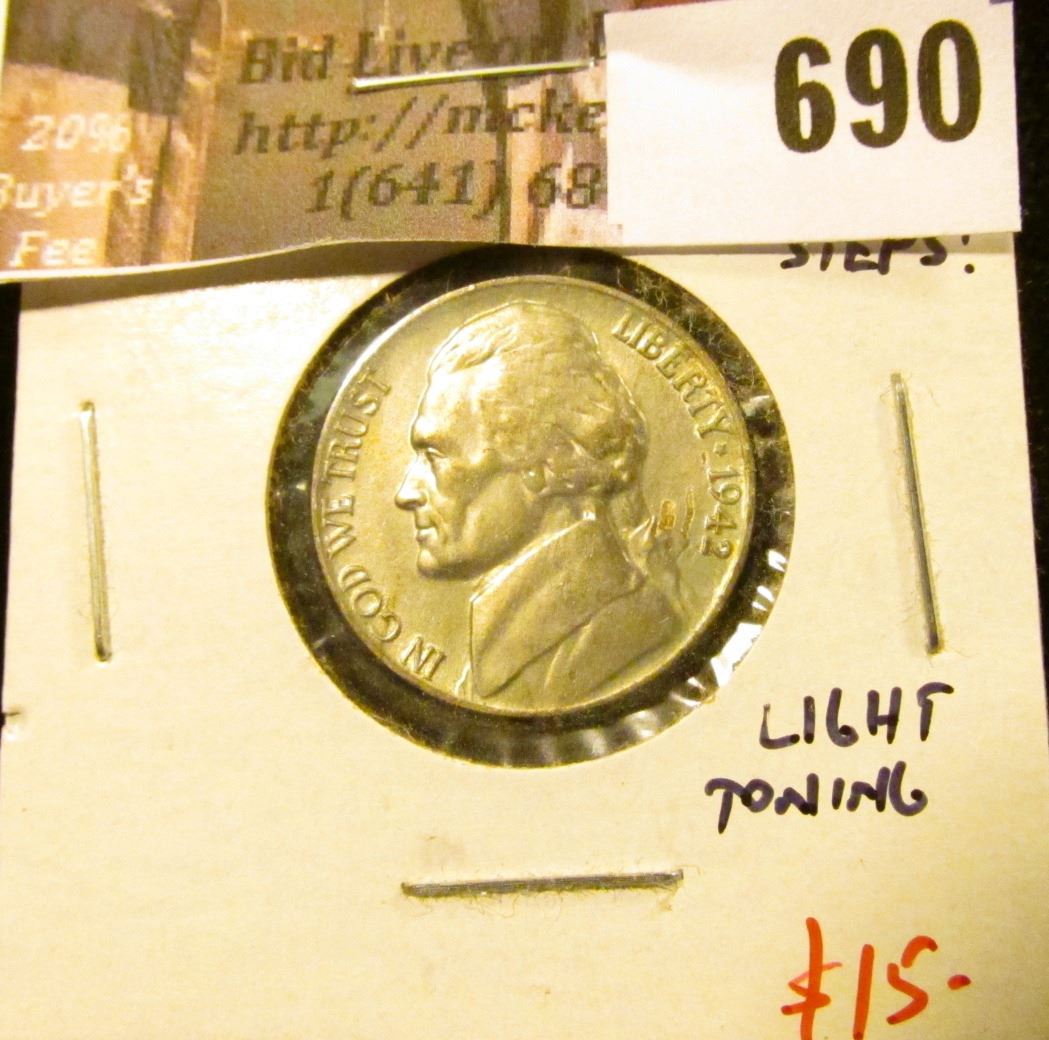 1942-P Jefferson Nickel, BU MS64+ full steps, light toning, value $15