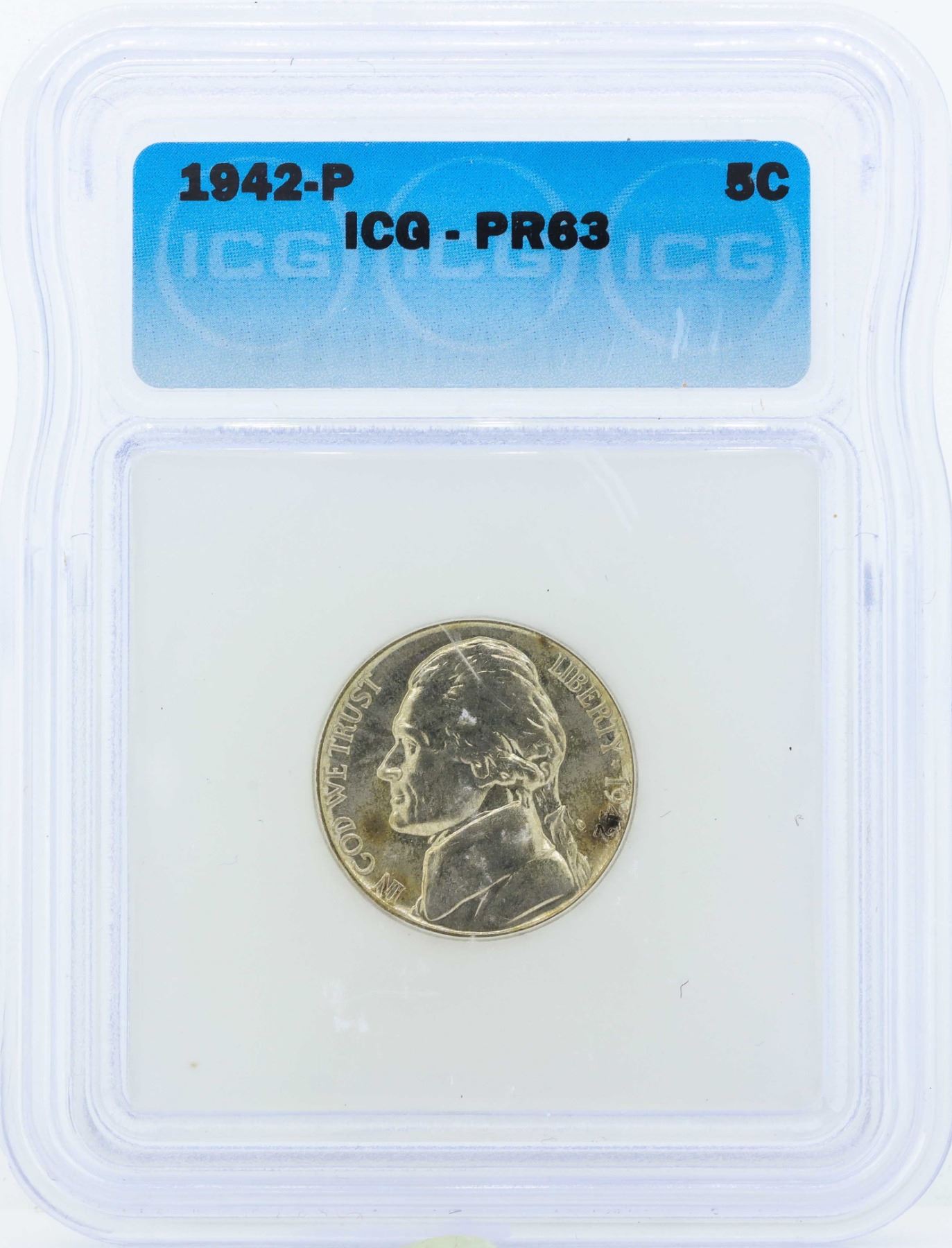 One 1942-P Jefferson Proof Nickel Coin ICG PR63.