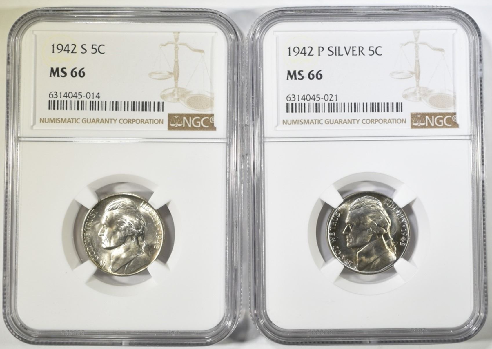 1942-P,S SILVER JEFFERSON NICKELS NGC MS-66