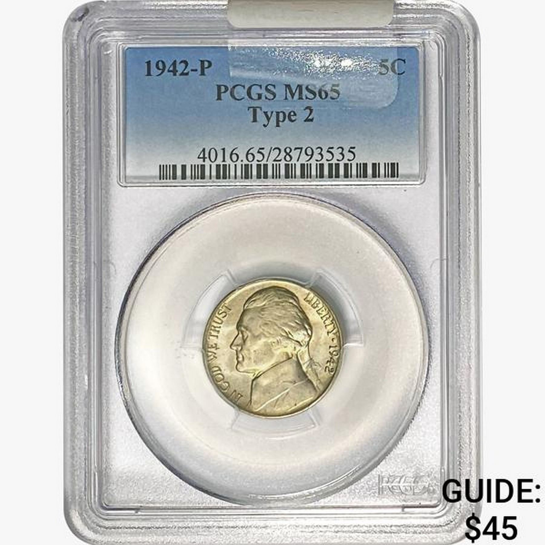 1942-P TYPE 2 Jefferson Nickel PCGS MS65