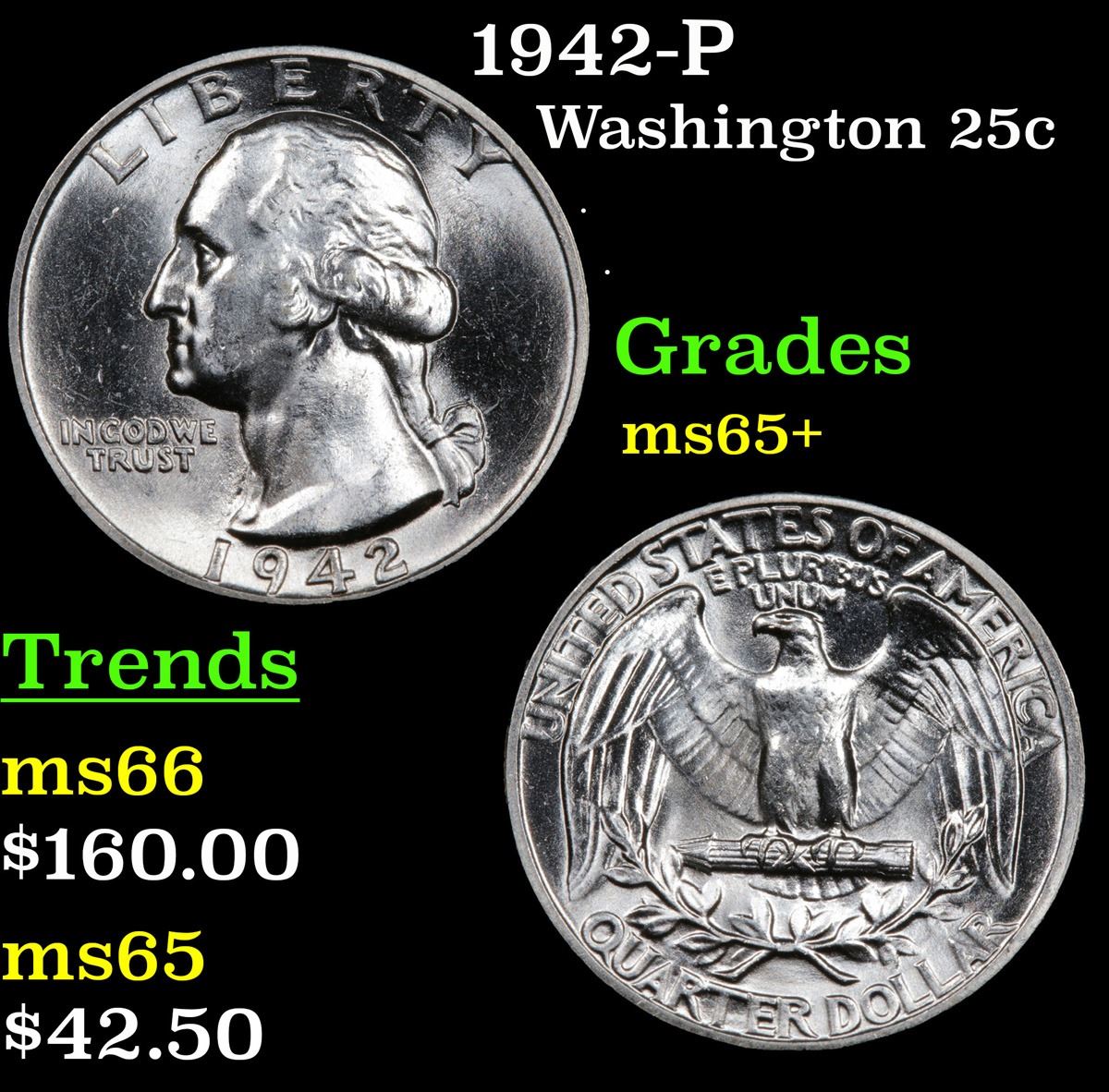 1942-P Washington Quarter 25c Grades GEM+ Unc.