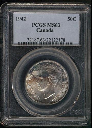 1942 PCGS MS63 Russet, blue and golden tones over full lustre.