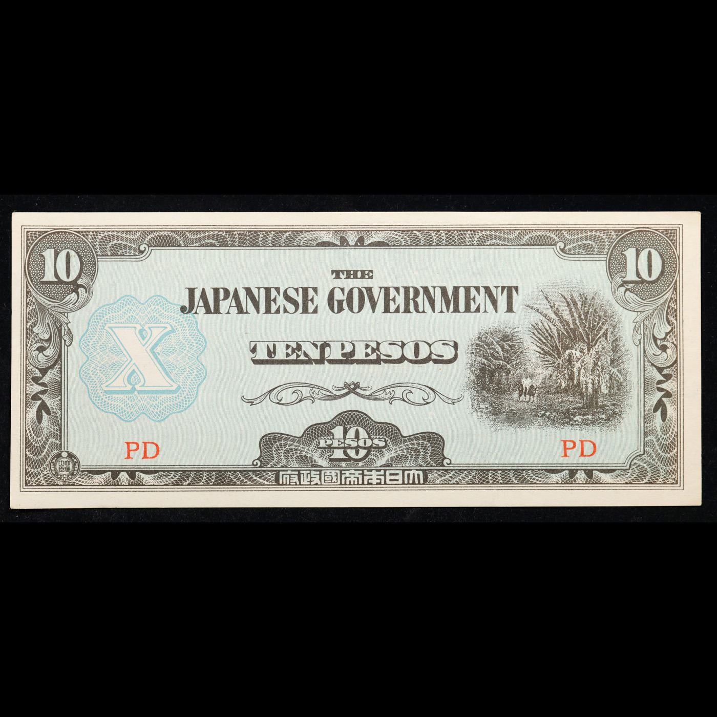 1942 Philippines 10 Pesos Japanese WWII Invasion Currency Grades Gem CU. Japanese invasion money, officially known as Southern Development Bank Notes (Japanese: ??????? Dai T?-A Sens? gunpy?, "Greater East Asia War military scrip"), was currency issued by the Japanese Military Authority as a replacement for local currency after the conquest of colonies and other states in World War II. Japan printed this currency for many countries, including Malaysia, Singapore, North Borneo, Sarawak, Burma, Brunei, and several Oceania territories controlled by Australia.