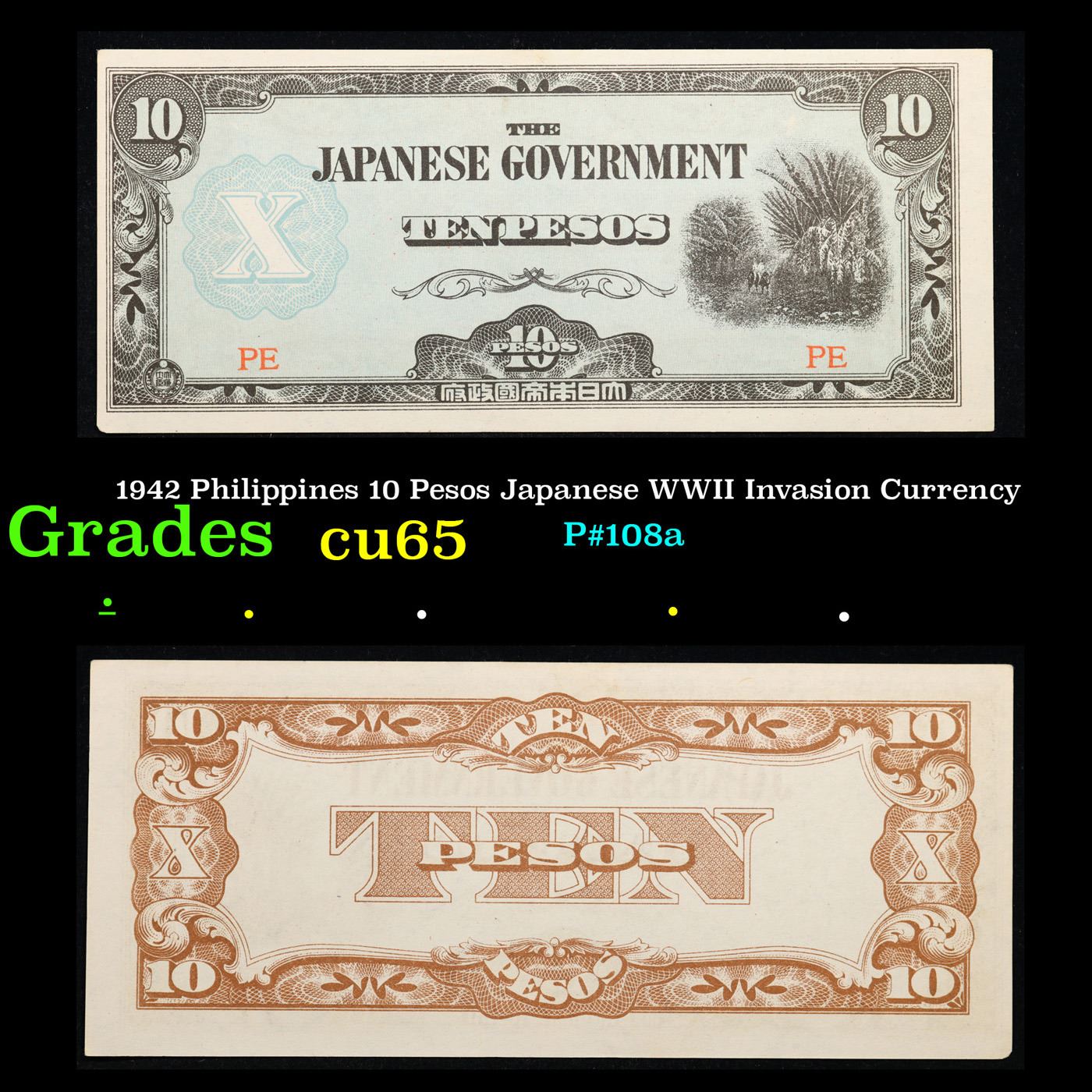 1942 Philippines 10 Pesos Japanese WWII Invasion Currency Grades Gem CU. Japanese invasion money, officially known as Southern Development Bank Notes (Japanese: ??????? Dai T?-A Sens? gunpy?, "Greater East Asia War military scrip"), was currency issued by the Japanese Military Authority as a replacement for local currency after the conquest of colonies and other states in World War II. Japan printed this currency for many countries, including Malaysia, Singapore, North Borneo, Sarawak, Burma, Brunei, and several Oceania territories controlled by Australia.