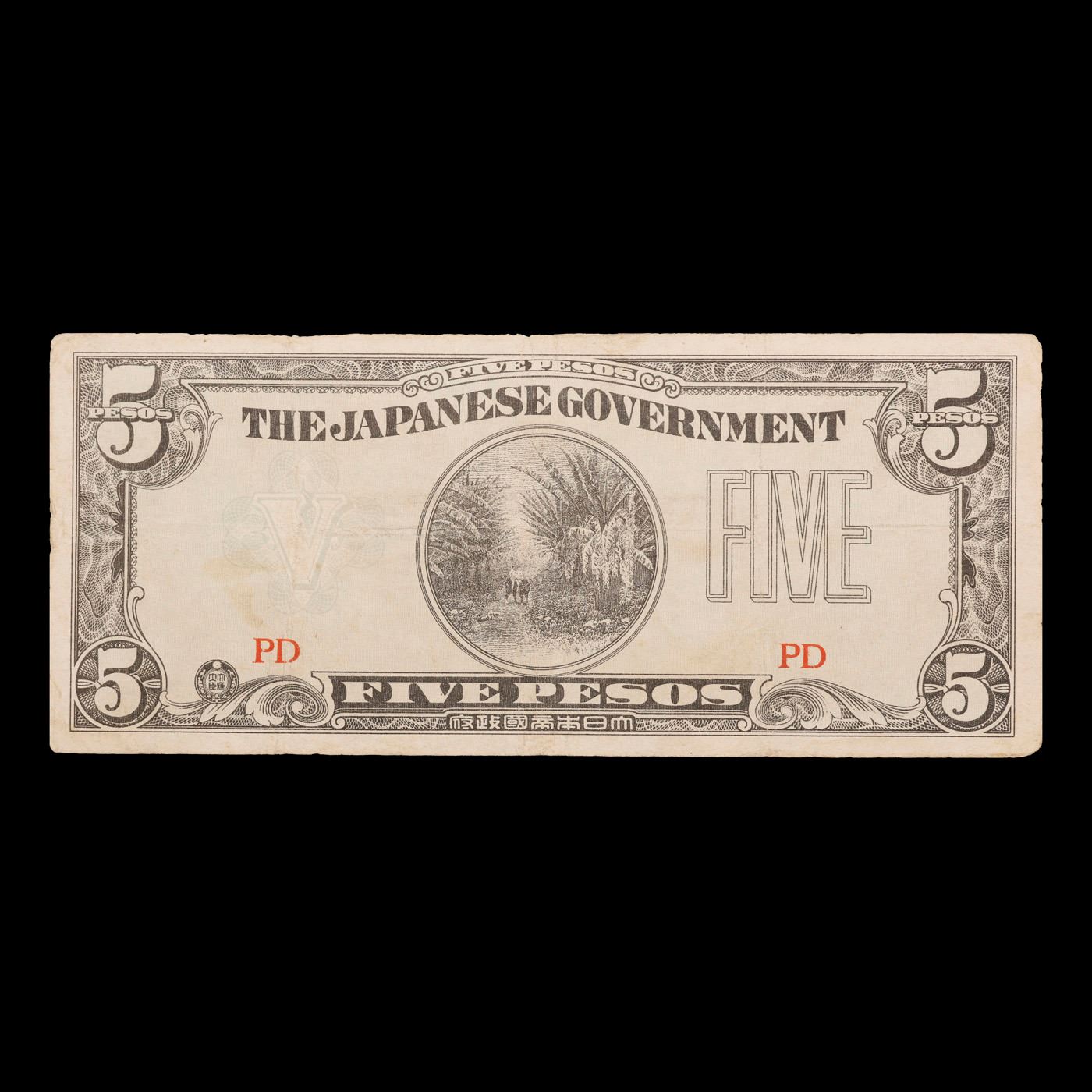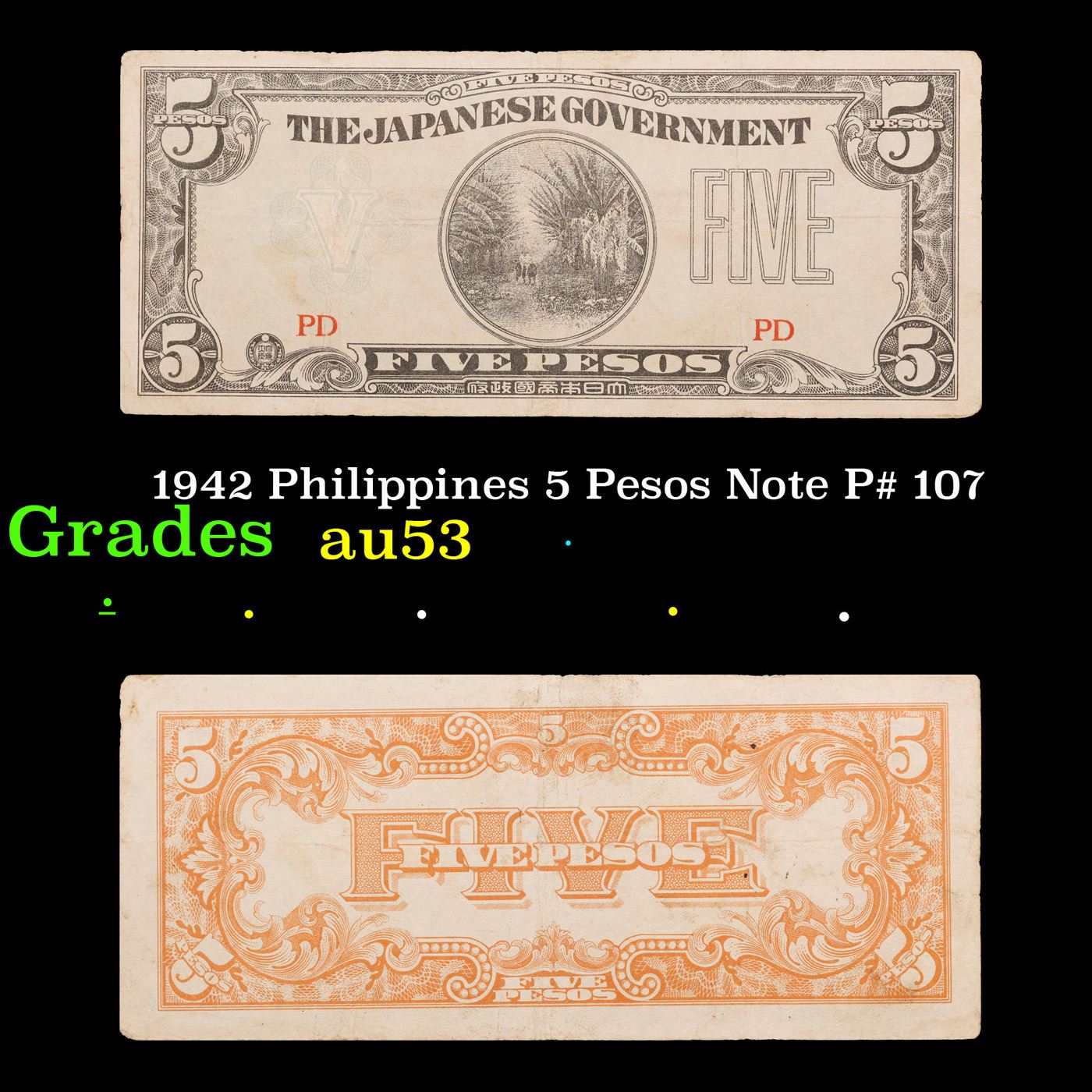 1942 Philippines 5 Pesos Note P# 107 Grades Select AU.