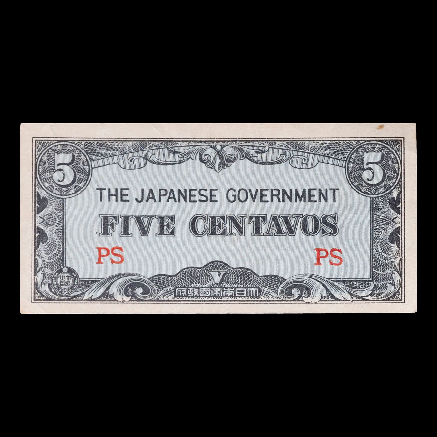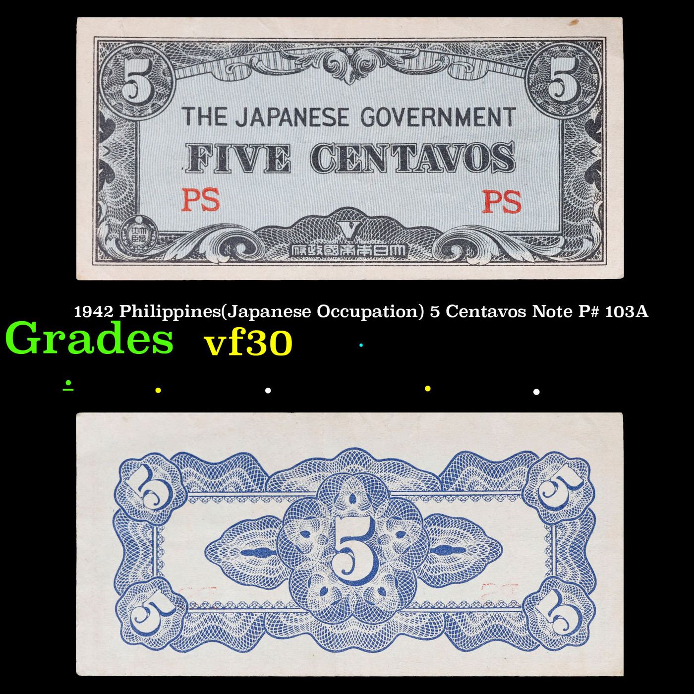 1942 Philippines(Japanese Occupation) 5 Centavos Note P# 103A Grades vf++.