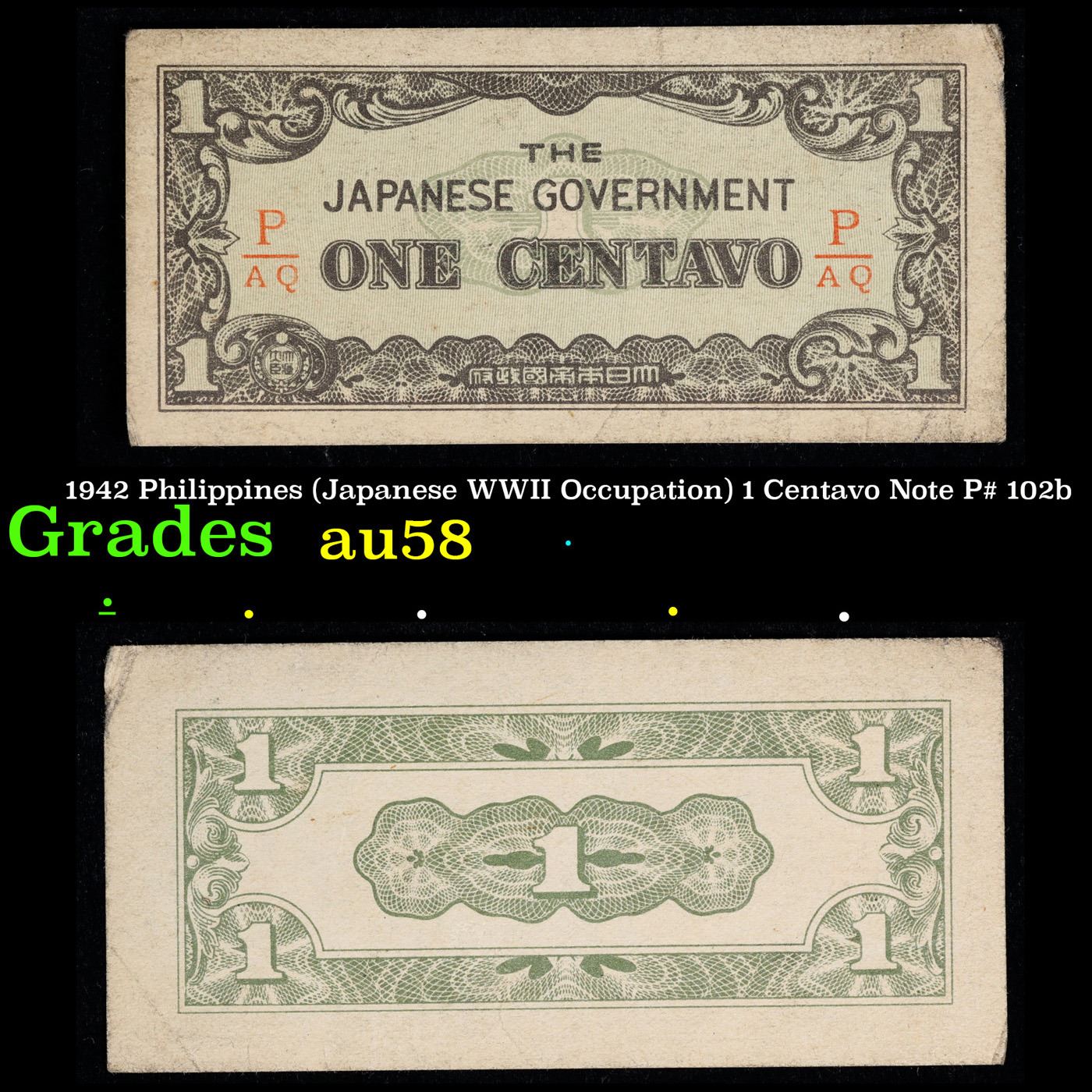 1942 Philippines (Japanese WWII Occupation) 1 Centavo Note P# 102b Grades Choice AU/BU Slider. Japanese invasion money, officially known as Southern Development Bank Notes (Japanese: ??????? Dai T?-A Sens? gunpy?, "Greater East Asia War military scrip"), was currency issued by the Japanese Military Authority as a replacement for local currency after the conquest of colonies and other states in World War II. Japan printed this currency for many countries, including Malaysia, Singapore, North Borneo, Sarawak, Burma, Brunei, and several Oceania territories controlled by Australia.