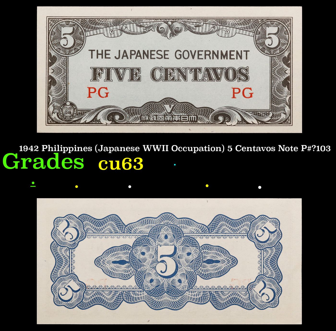 1942 Philippines (Japanese WWII Occupation) 5 Centavos Note P#?103 Grades Select CU