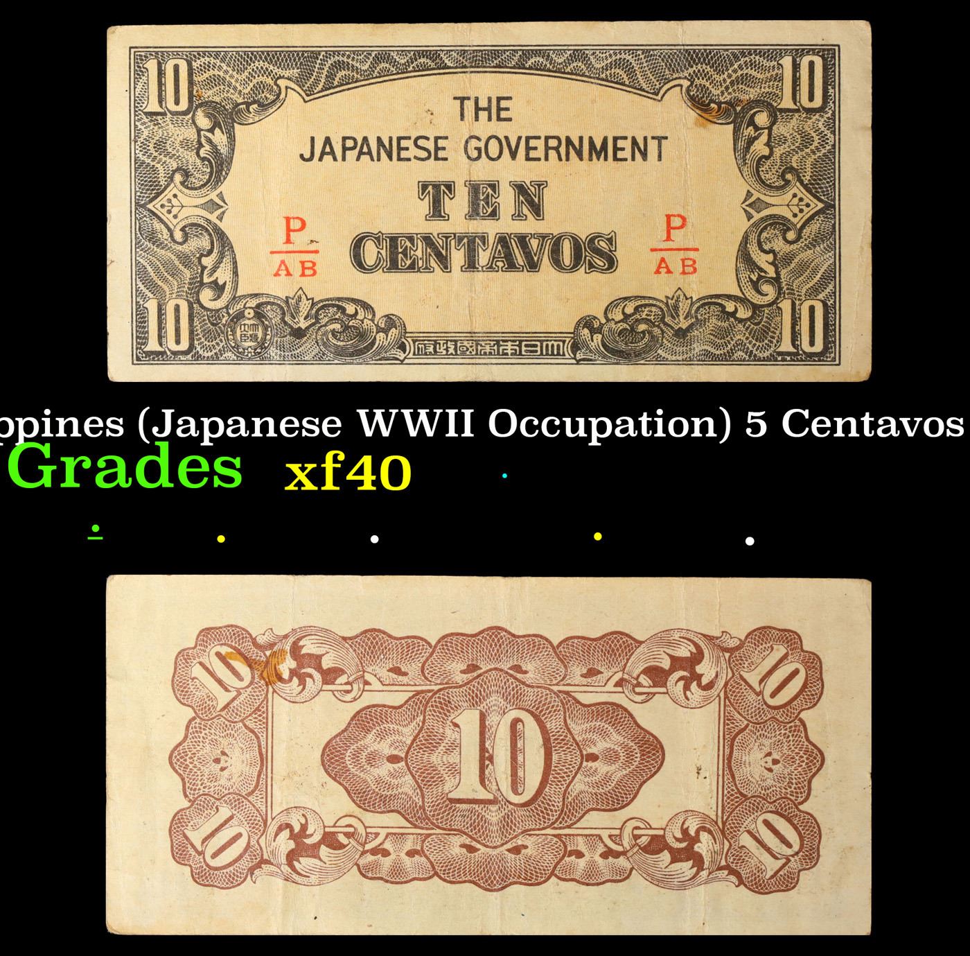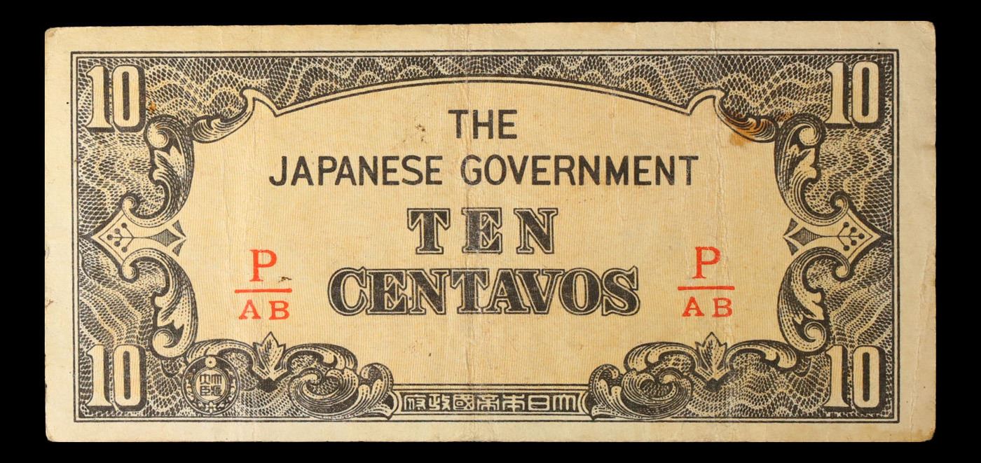 1942 Philippines (Japanese WWII Occupation) 5 Centavos Note P#?104 Grades xf. Japanese invasion money, officially known as Southern Development Bank Notes (Japanese: ??????? Dai T?-A Sens? gunpy?, "Greater East Asia War military scrip"), was currency issued by the Japanese Military Authority as a replacement for local currency after the conquest of colonies and other states in World War II. Japan printed this currency for many countries, including Malaysia, Singapore, North Borneo, Sarawak, Burma, Brunei, and several Oceania territories controlled by Australia. Some Japanese invasion notes are actually counterfeits produced by the American Office of Strategic Services or the British Special Operations Executive, meant to flood and destabilize the economy in the occupied areas, sometimes also including propaganda printed on the notes themselves.