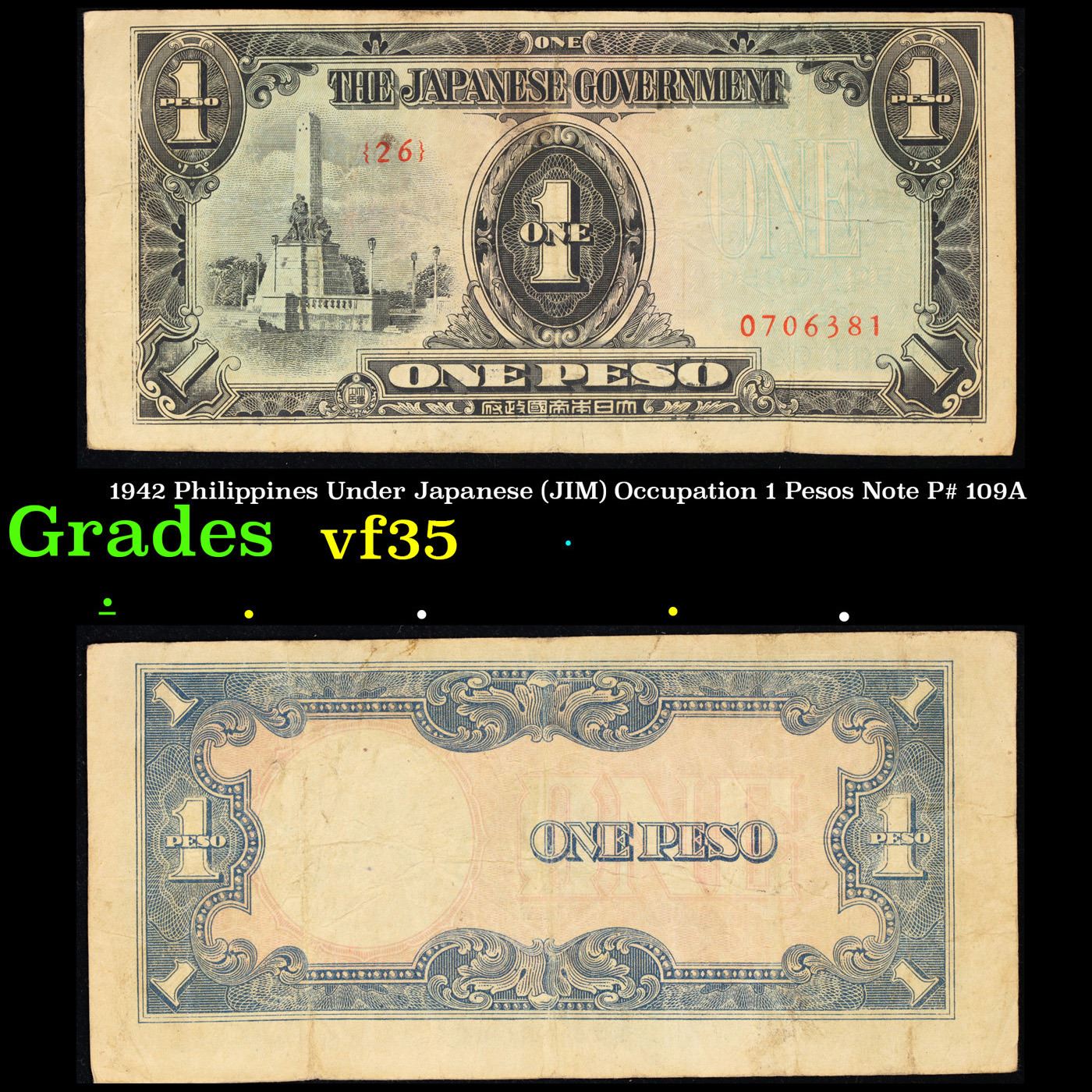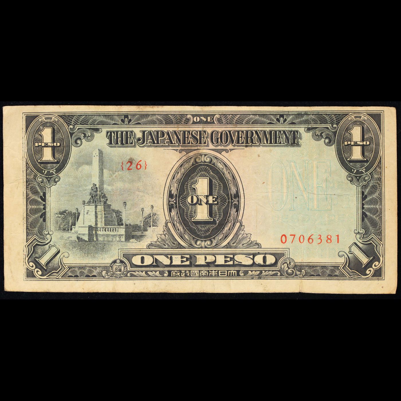 1942 Philippines Under Japanese (JIM) Occupation 1 Pesos Note P# 109A Grades vf++. Japanese invasion money, officially known as Southern Development Bank Notes (Japanese: ??????? Dai T?-A Sens? gunpy?, "Greater East Asia War military scrip"), was currency issued by the Japanese Military Authority as a replacement for local currency after the conquest of colonies and other states in World War II. Japan printed this currency for many countries, including Malaysia, Singapore, North Borneo, Sarawak, Burma, Brunei, and several Oceania territories controlled by Australia.