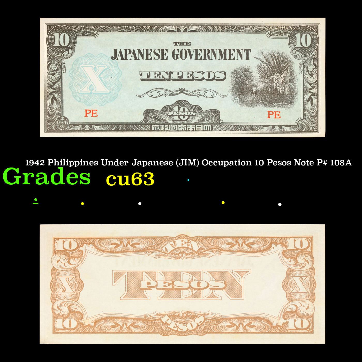 1942 Philippines Under Japanese (JIM) Occupation 10 Pesos Note P# 108A Grades Select CU